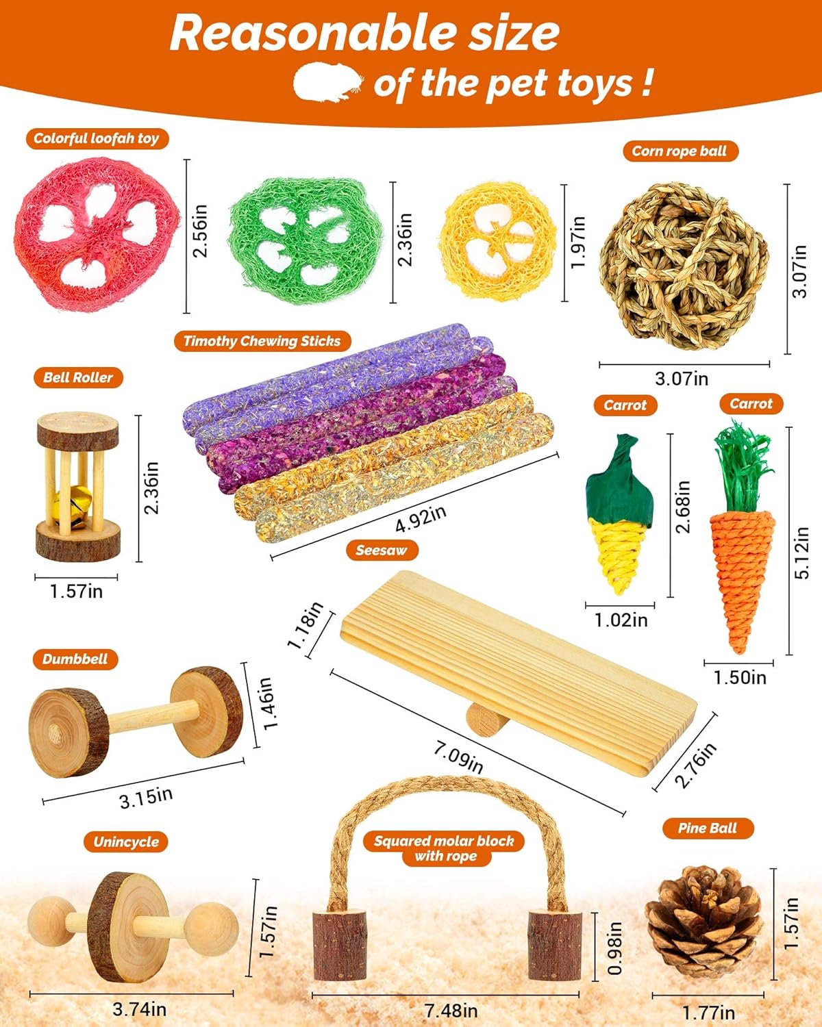 Hamster & Guinea Pig Toys - 18 Pcs Wooden Small Animal Chew Toys for Teeth - Rabbit, Chinchilla, Gerbils, Rats Exercise Accessories