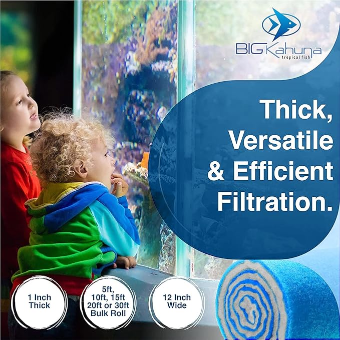 Big Kahuna Aquarium Filter Floss Rolls – 12-inch Pond and Aquarium Filter Media – 1-inch Thick Wet/Dry Aquarium Filter Pad – 10ft - Bonded Filter Media Pad for Freshwater or Marine Aquariums, Ponds