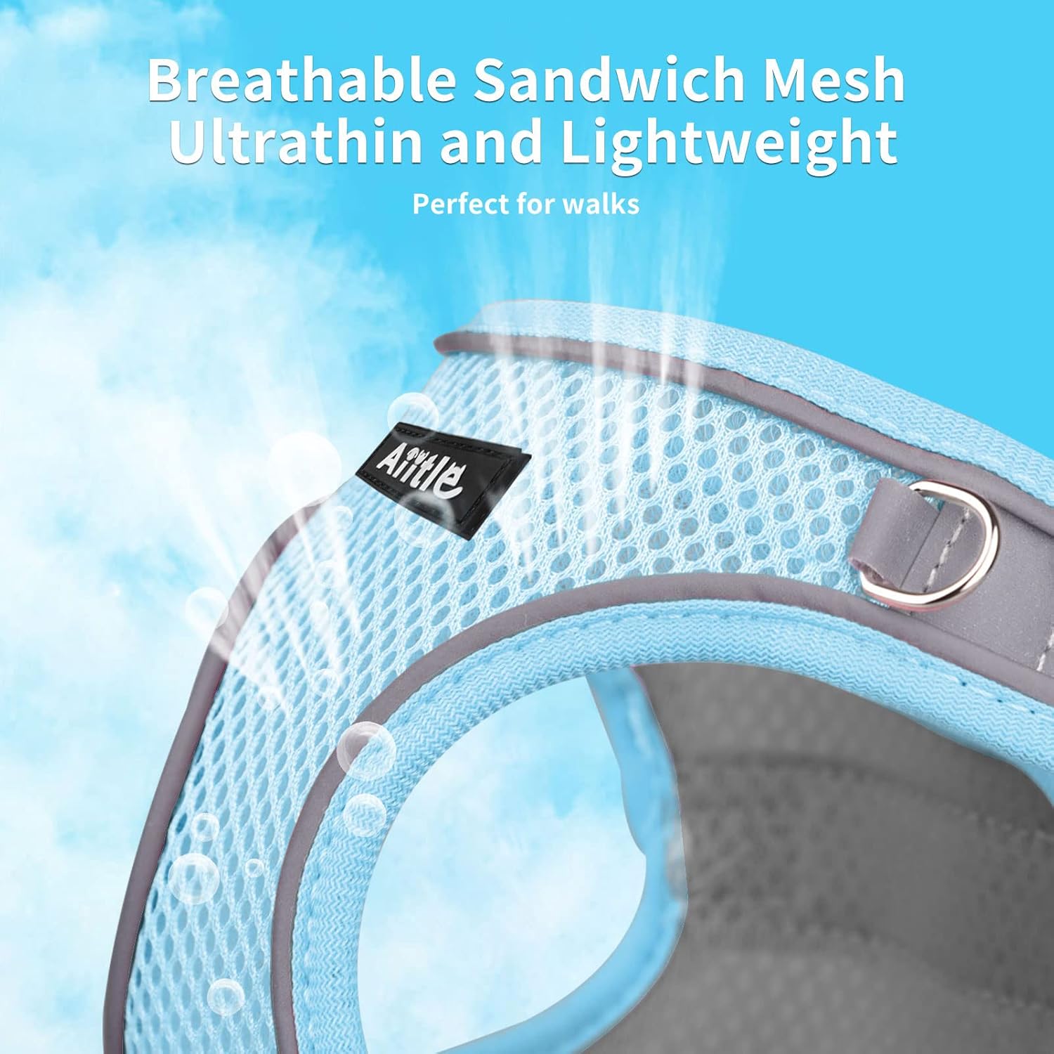 AIITLE Small Dog Harness with Leash, Breathable Mesh Vest, Reflective No-Pull Pet Harness for Outdoor Walking, Camping for Small Dogs, Cats, Blue XXS