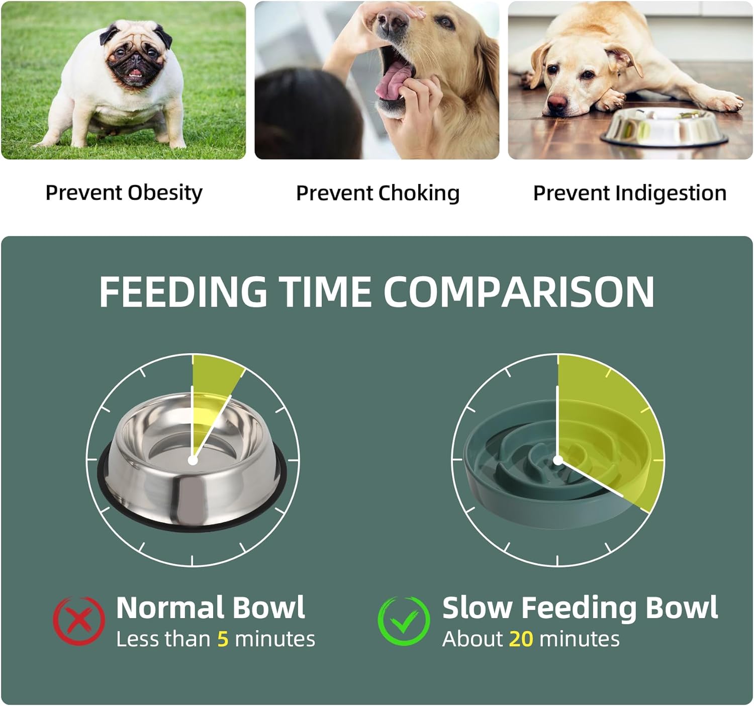 - Slow Down Eating Up to 10X : Havniva Slow Feeder dog bowls feature meal-lengthening ridges to help slow down your dog’s eating time by 10X! Anti-Chocking , Unique slow feeding design , promotes healthy slow eating, helping prevent obesity, bloat, regurgitation and overeating.