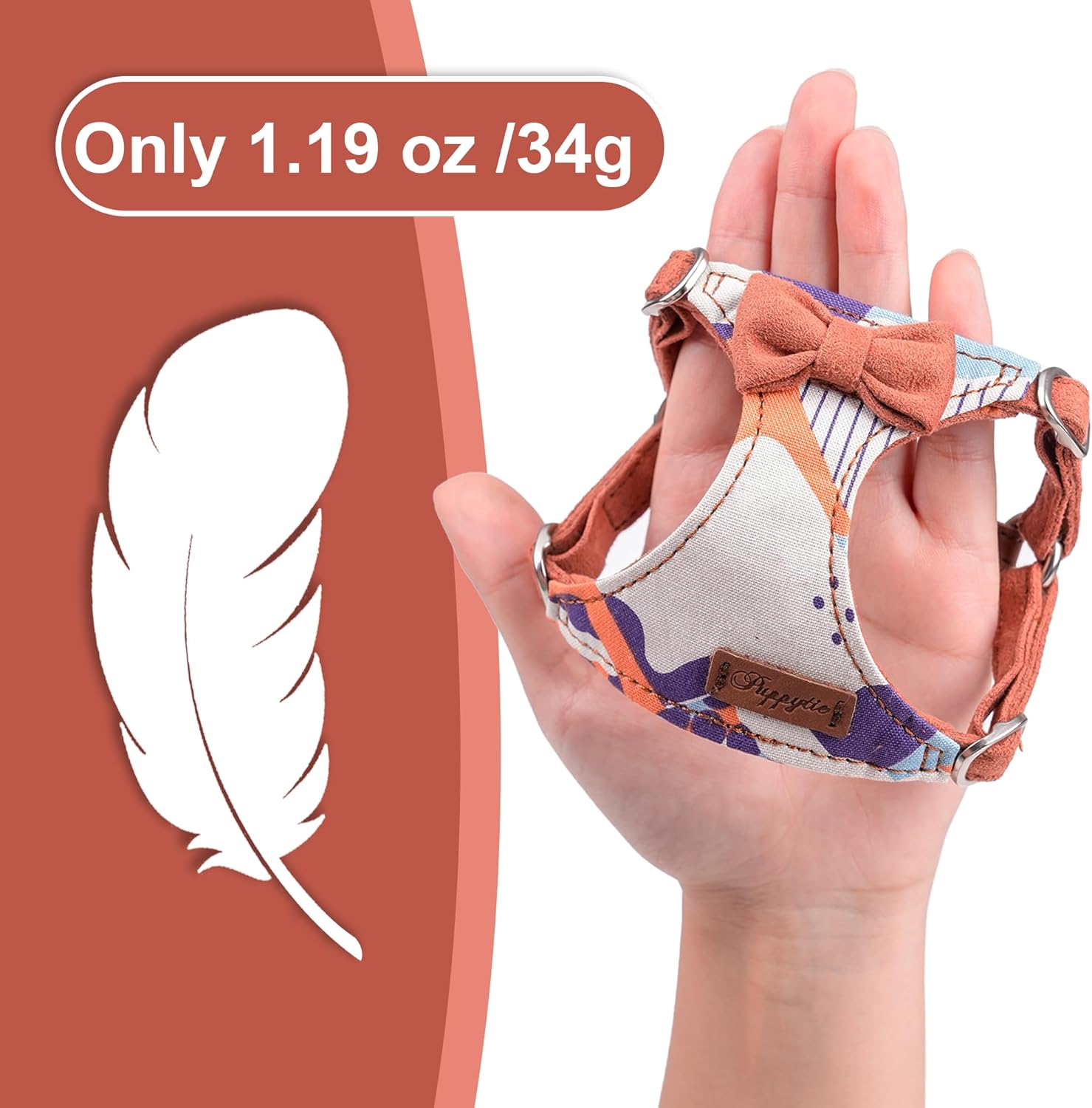 Puppytie No Pull xs Dog Harness with Multifunction Dog Leash,Soft Adjustable No Choke Escape Proof Pet Harness Vest,Suede Bow Brown,XS