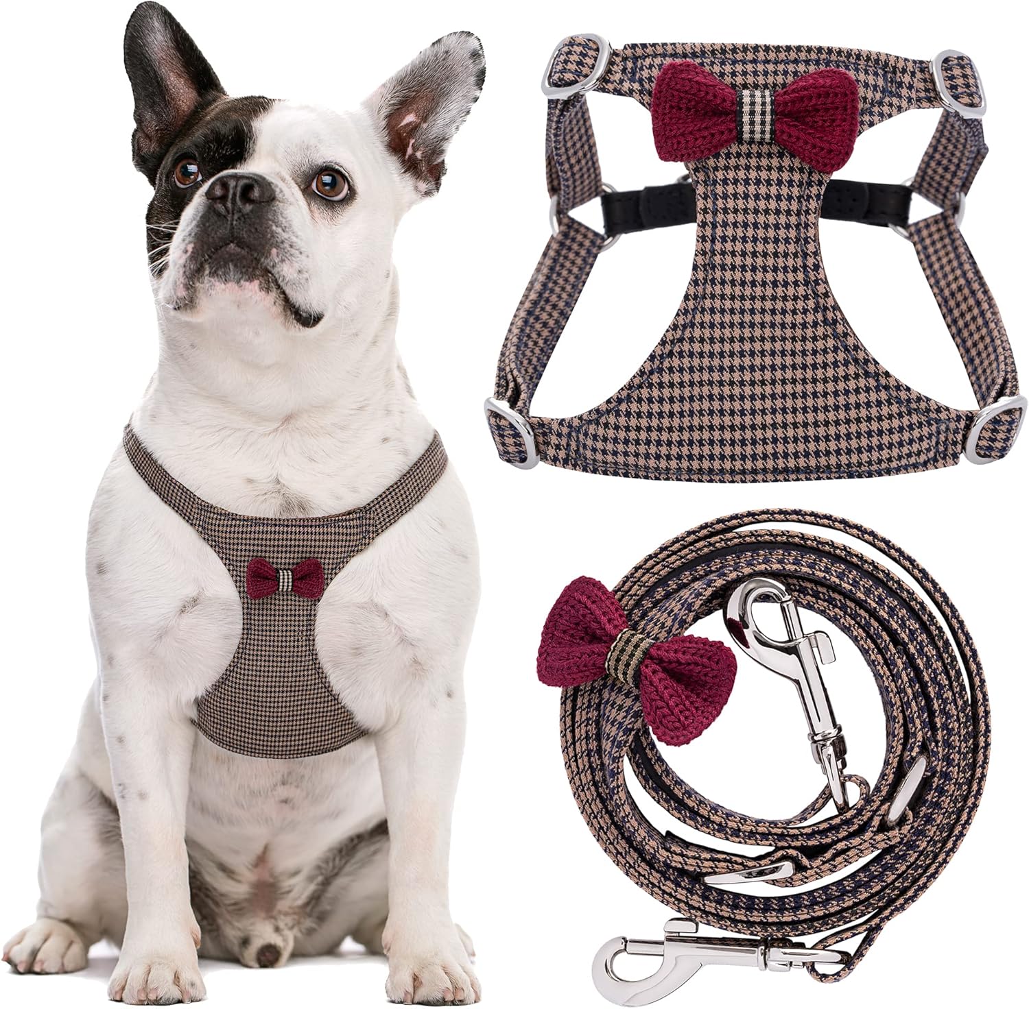 Puppytie No Pull Dog Harness with Multifunction Dog Leash,Soft Adjustable No Choke Escape Proof Pet Harness Vest for Medium Dogs,Knitted Brown,M