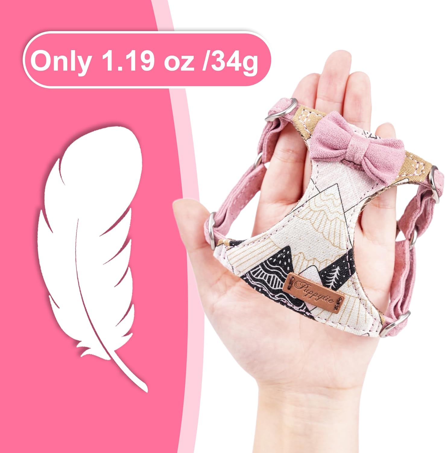 - No pull dog harness:No pull dog harness:Weight as low as 1.19 oz,undoubted ultra-light harness.Perfect tailoring design,patented rounded adjustment buckle,effectively protect the dog's bones and muscles during exercise to avoid injury.