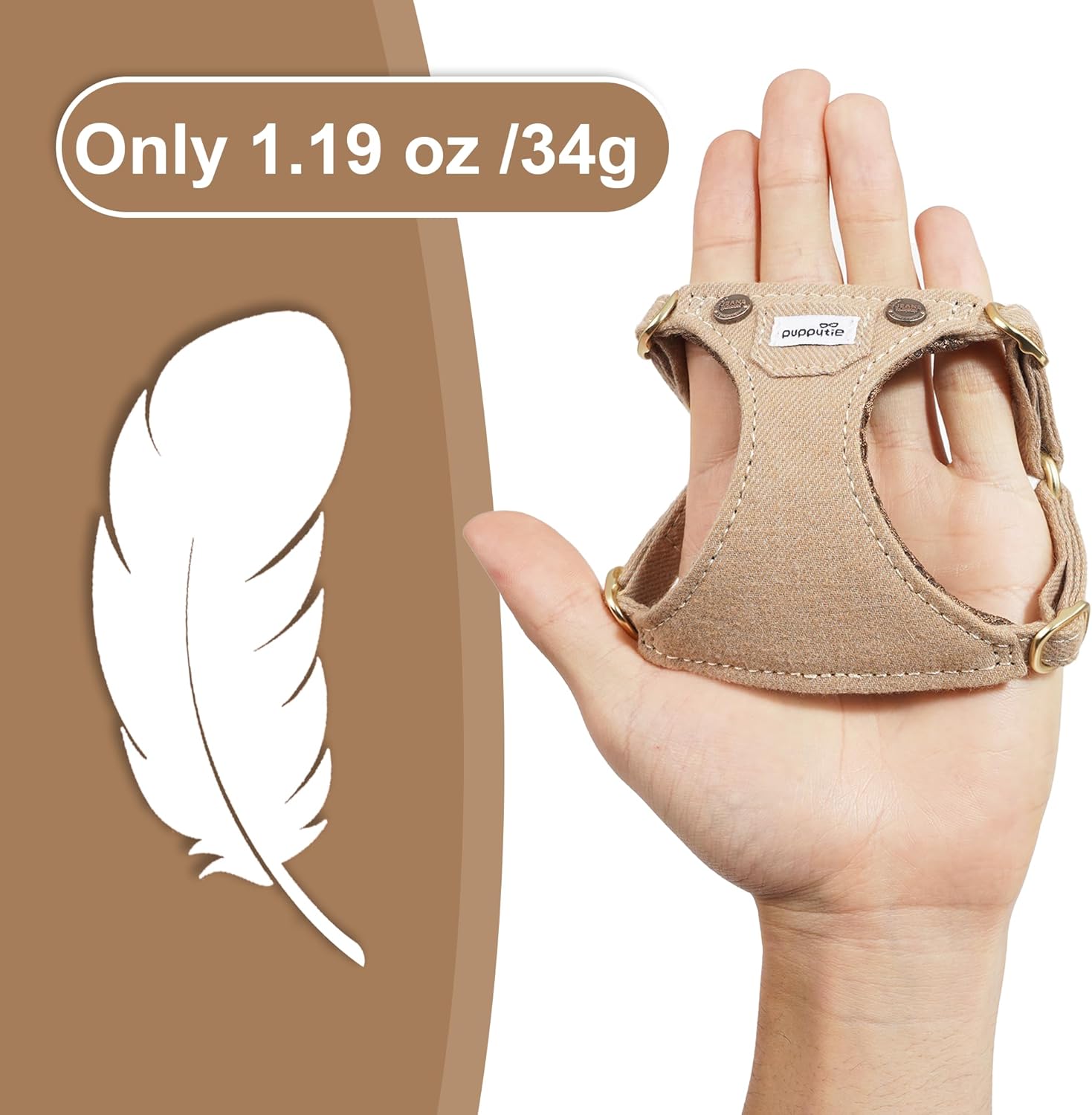 Puppytie No Pull xs Dog Harness with Multifunction Dog Leash,Soft Adjustable No Choke Escape Proof Pet Harness Vest,Denim Mocha Brown,XS