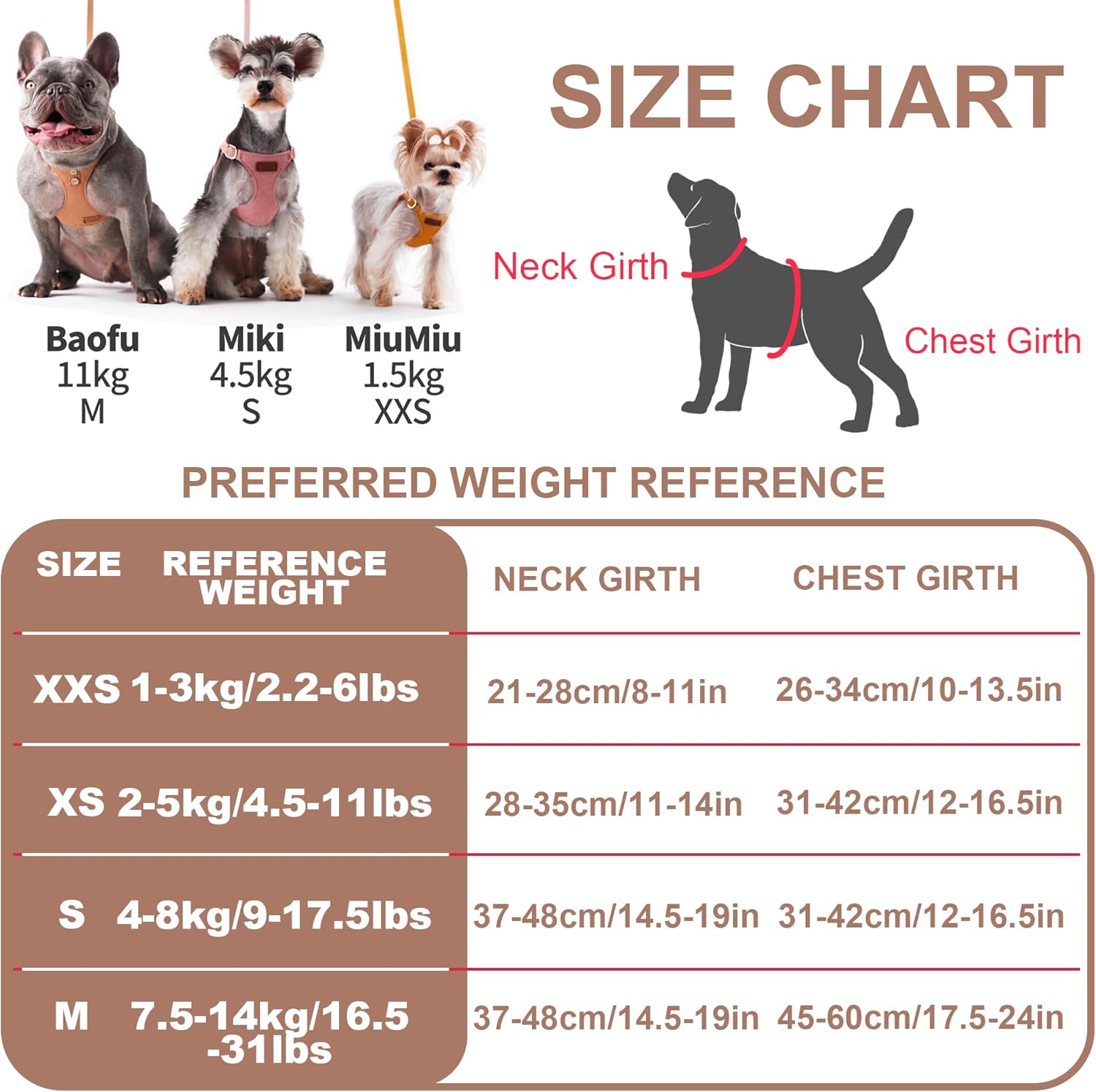 - No pull dog harness:No pull dog harness:Weight as low as 1.19 oz,undoubted ultra-light harness.Perfect tailoring design,patented rounded adjustment buckle,effectively protect the dog's bones and muscles during exercise to avoid injury.