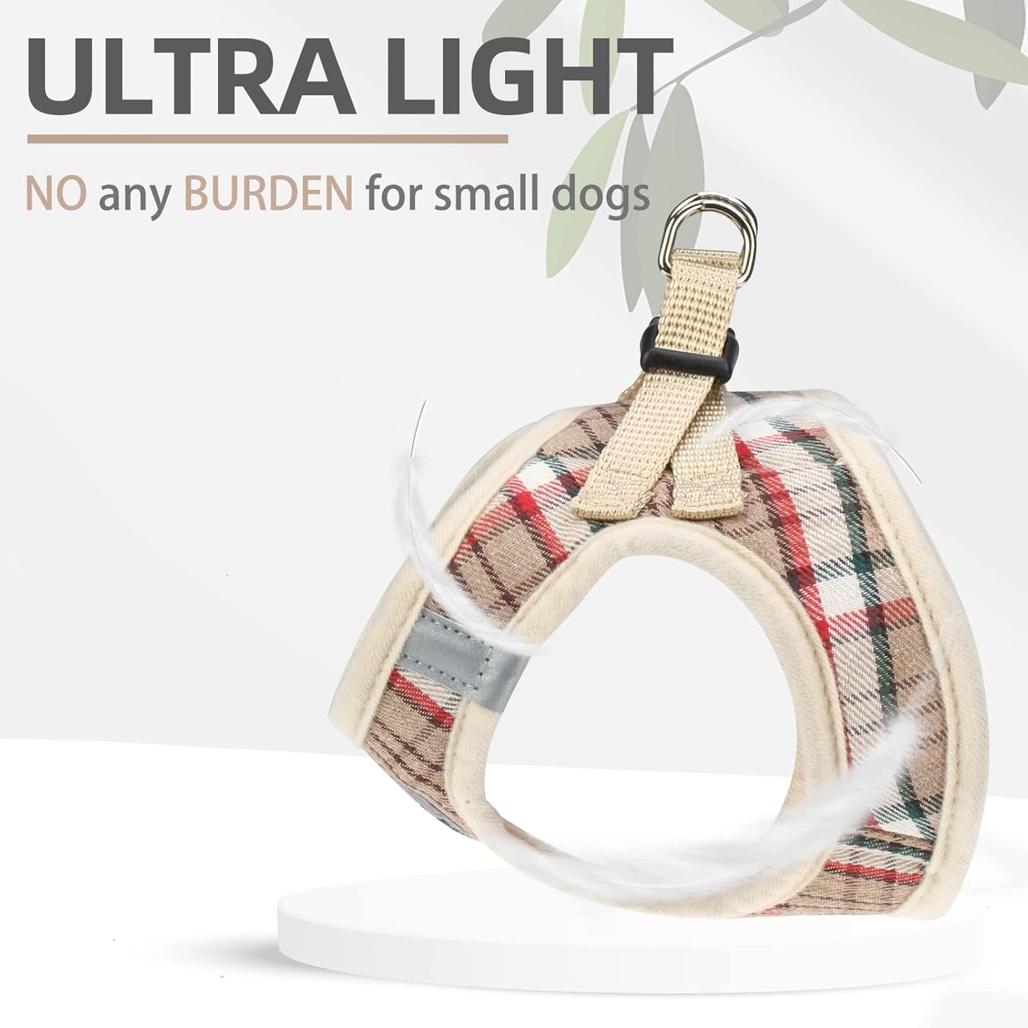 - [REFLECTIVE, PLAID PATTERN] - This Harness has two sides of reflective straps, and the middle logo also is reflective, so if you walk with your dog at night, then both of you will be safer! In addition, the classic plaid pattern is designed by our internal brand team, so it's very different from other normal harnesses. This plaid pattern looks both classic and stylish and is never out of date.