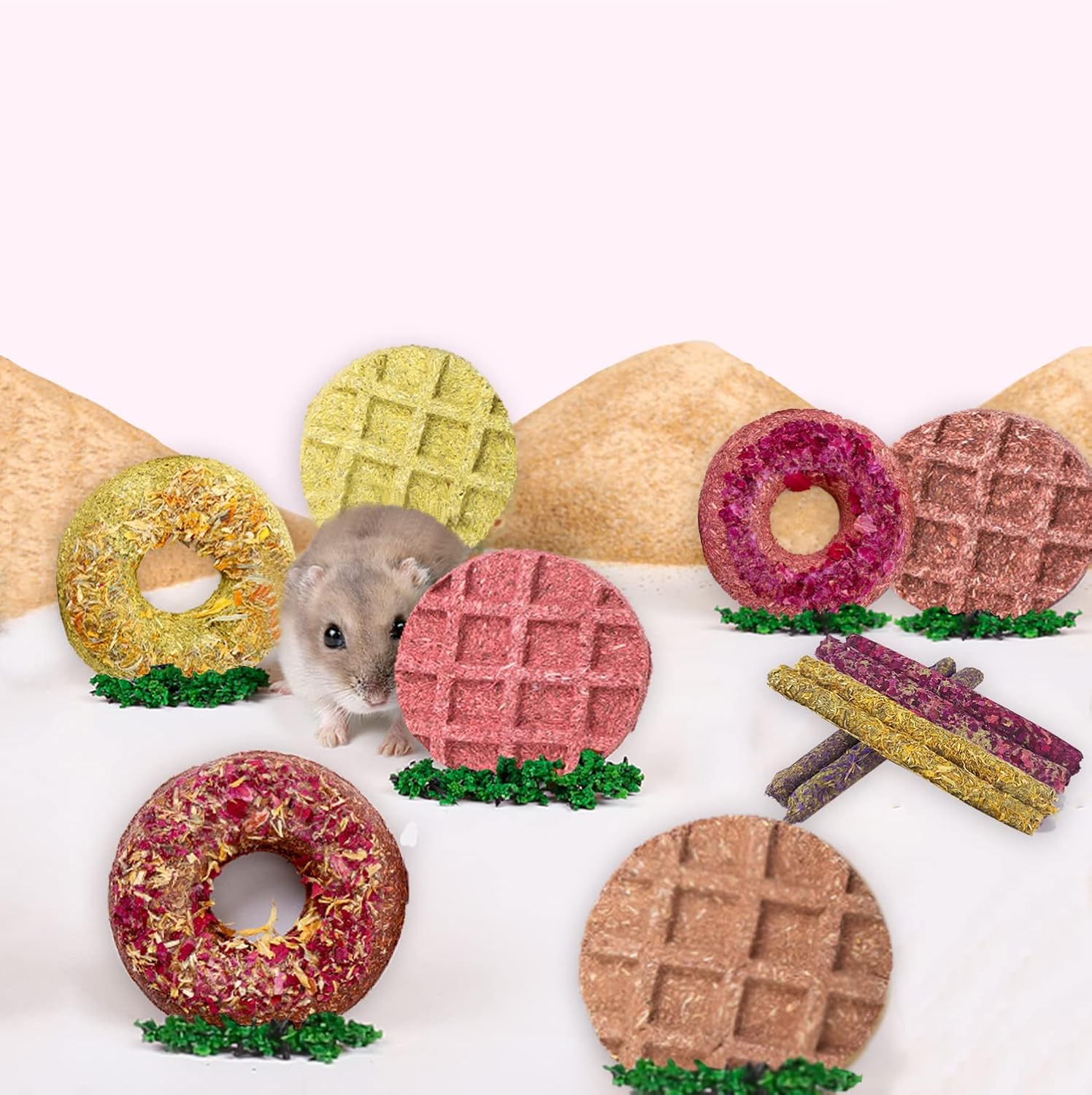 - MATERIAL: Our guinea pig toys made from grade timothy hay;adds fine petals;with including floral flavors rose;calendula;forget-me-not;so that small animals have more choices to chew without being bored