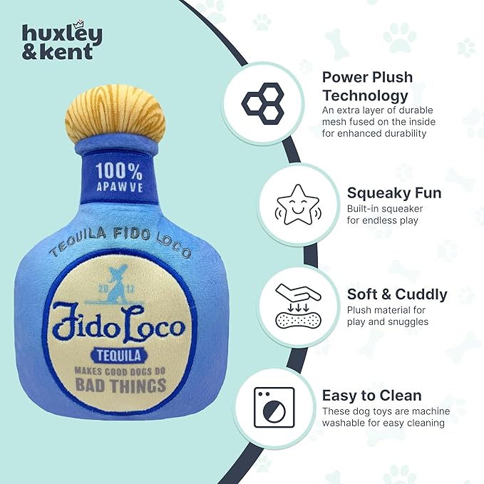Huxley & Kent Funny Dog Toy w/Squeaker – Power Plush Squeaky Dog Toys for Small, Medium & Large Dogs – Soft Stuffed Animal for Indoor Play & Fetch - Fido Loco, Small