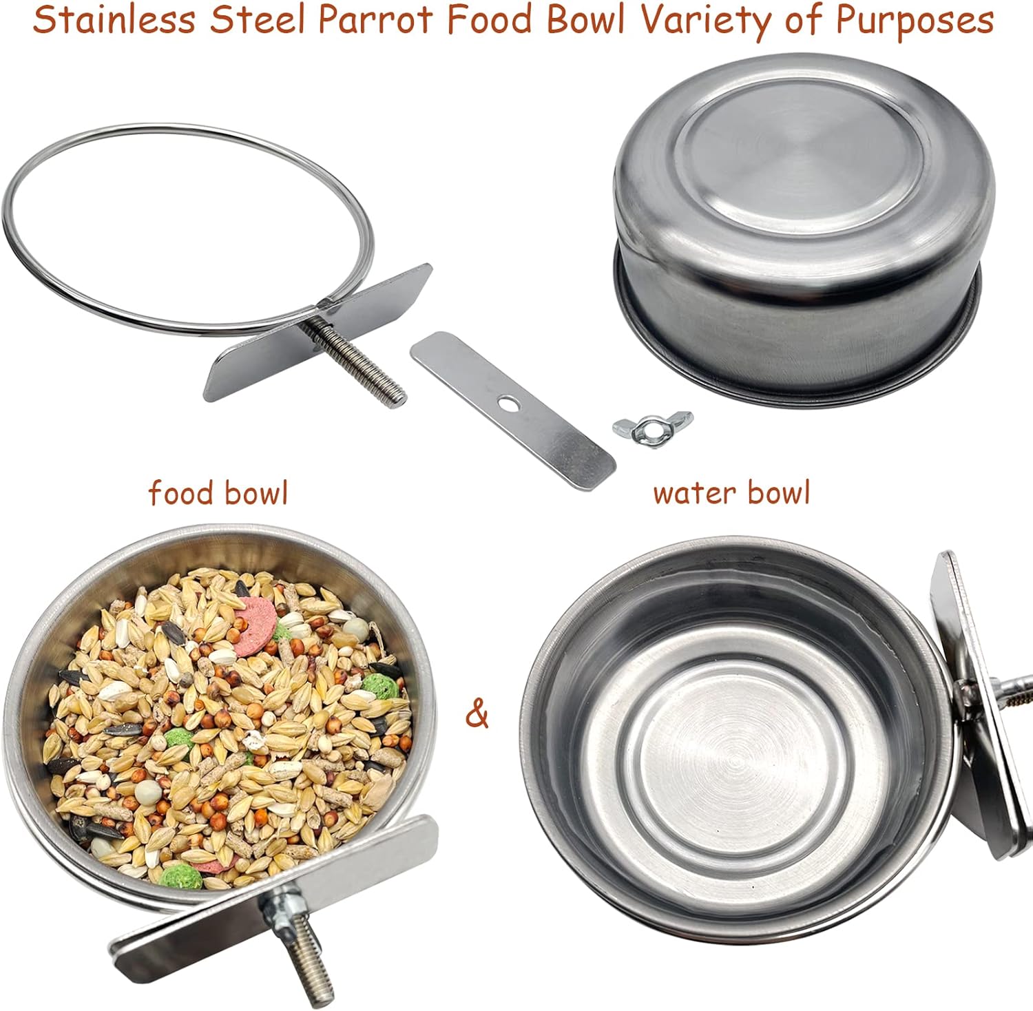 - CONNECT WITH ANY BIRD CAGE: Parrot Feeding Cups have firm clamp, it secures to side of bird cage. bird cups can hanging in the cages, It can be used for hold food or water, prevents your bird from accidentally tipping food/water bowl