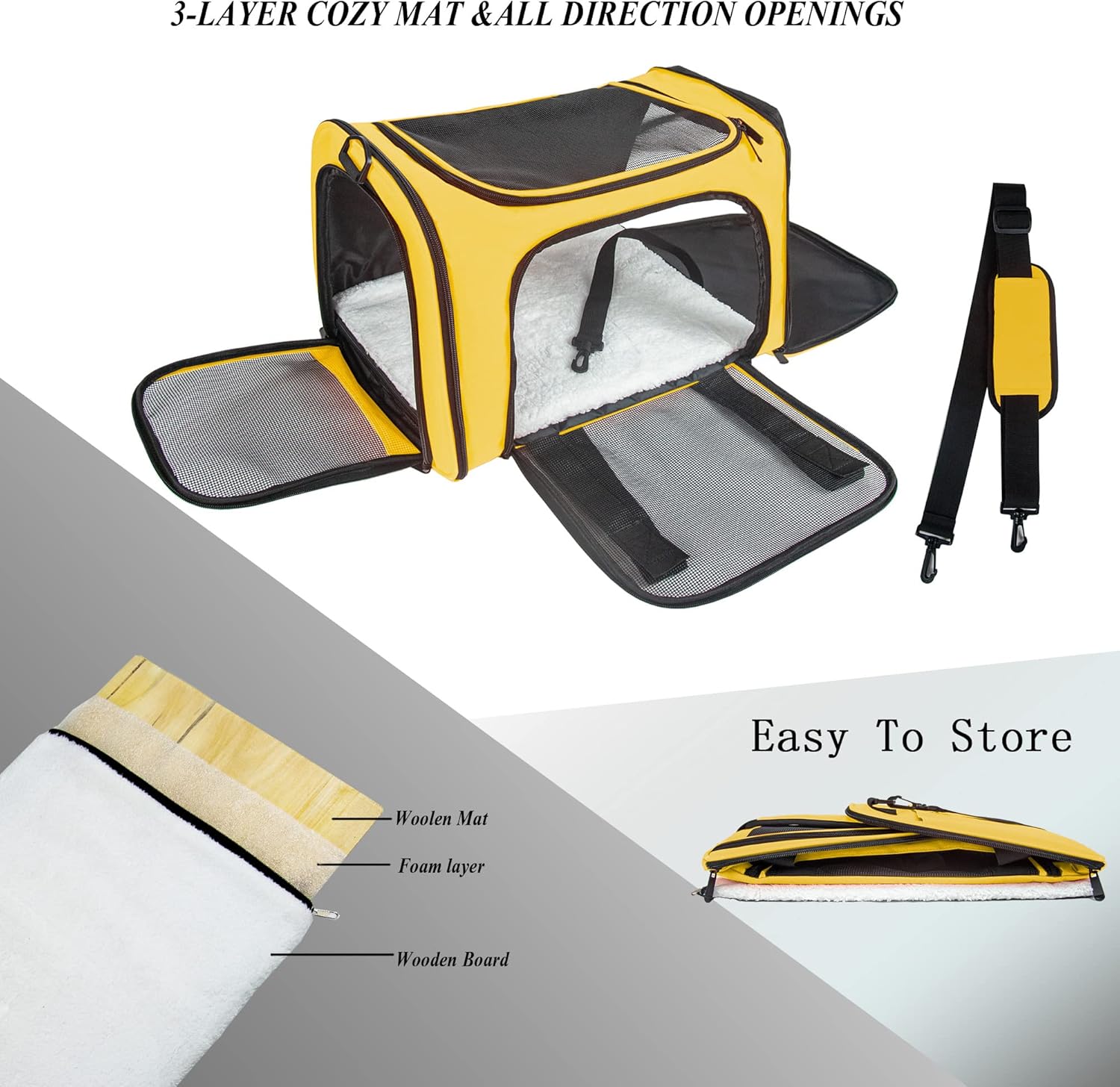 Soft Sided Carrier for Small Medium Cats Dogs,TSA Airline Approved Collapsible Travel Pet Carrier (Medium, Yellow)