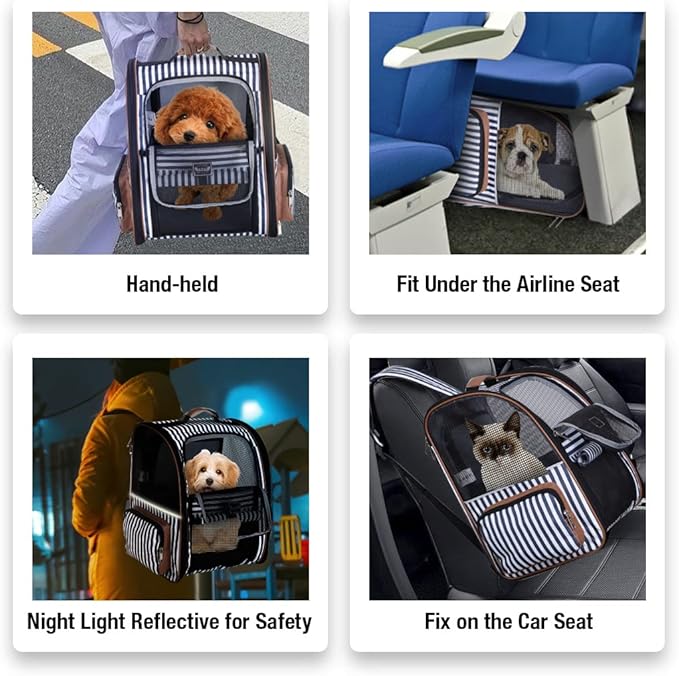 Lekebobor Large Cat Backpack Carrier Expandable Pet Carrier Backpack for Small Dogs Medium Cats Fit Up to 18 Lbs, Dog Carrier Backpack,Puppy Backpack Carrier, Blue Striped