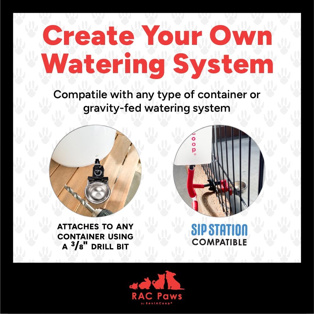 Rac Paws by RentACoop DIY Auto-Fill Metal Cup Waterer Kit - Great for Small Animals, Pets, Bunnies, Ferret, Chickens, Hamsters, Guinea Pigs, Rabbits, Chinchillas, Mice, Rats - 2 Pack
