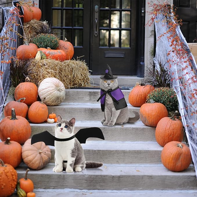- What Will You Get: 1 piece cat bat wings costume, 1 piece vampire cloak and 1 piece wizard hat, suitable for your pet's assembly needs in Halloween