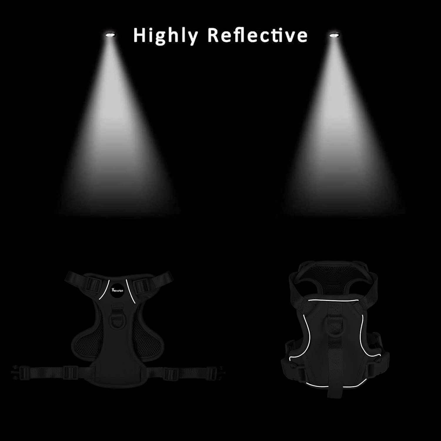 - [ Two Metal Clips ] No pull dog harness has two different D-rings to attach the leash. Attach to the chest D-ring to stop pulling, and use the back D-ring for more relaxed walks. And soft handle on the back adds more control on walks. Reflective straps makes both of you safer in the dark.