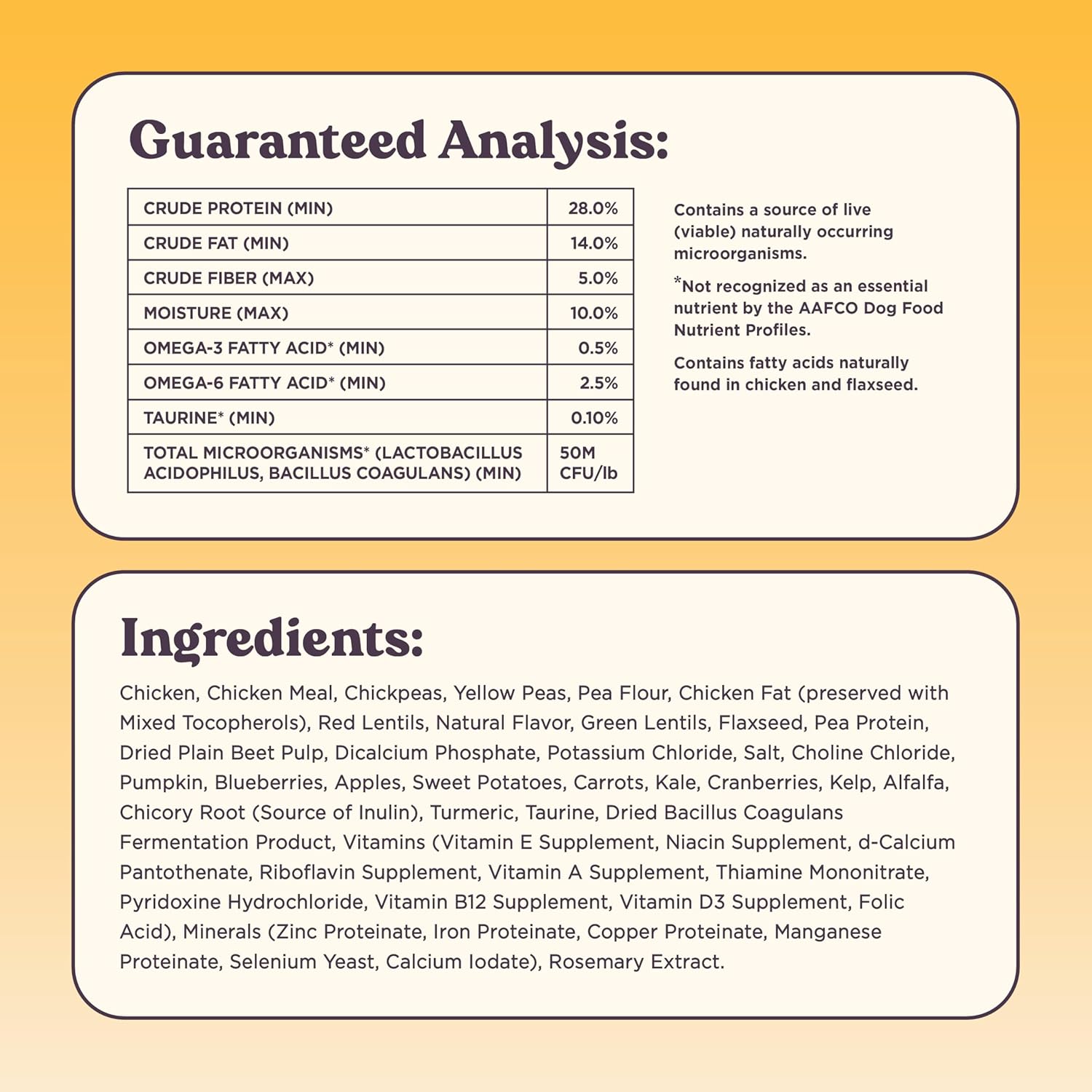 - NATURAL INGREDIENTS: Made with 20 plant-based superfoods in every bag including flaxseed, pumpkin, apples, carrots, and cranberries. A delicious flavor enjoyed by all dogs, even picky eaters.