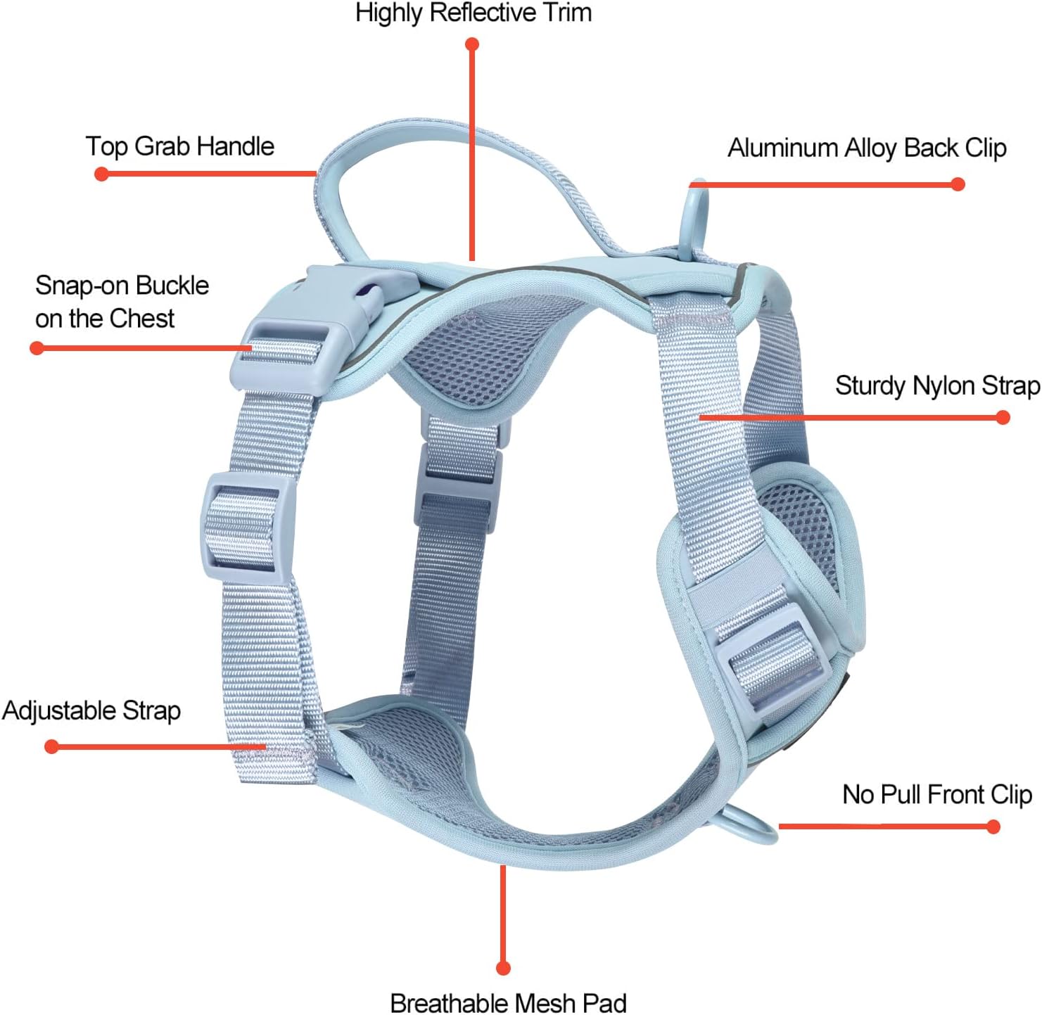 Petmolico Dog Harness for Small Dogs, Cute Harness Vest with Two Leash Clips and Soft Handle, Reflective Easy Walk Puppy Vest - Light Blue, Small