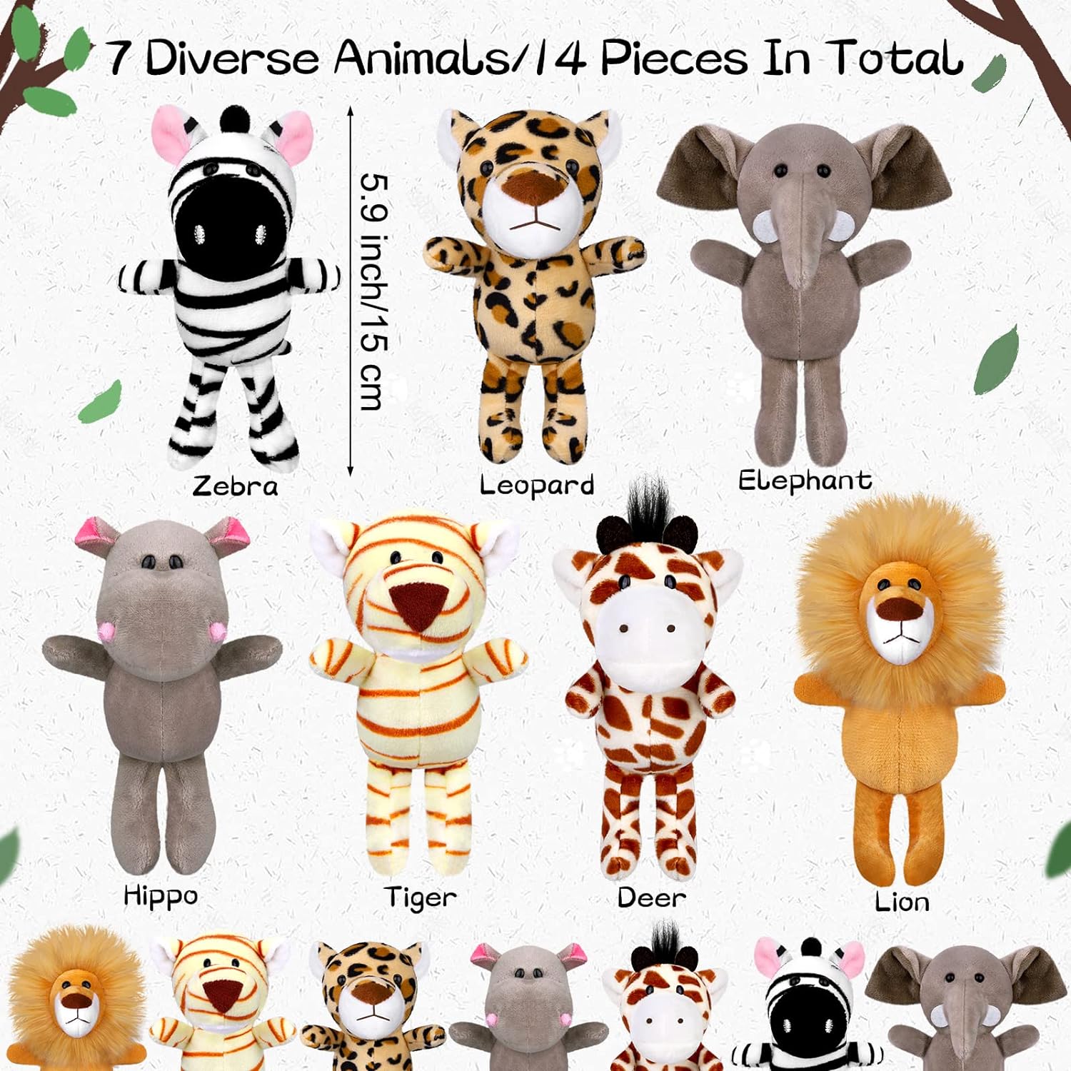 Elcoho 14 Pieces Safari Mini Jungle Animal Plush Toys Small Stuffed Forest Animals Plush Toys 5.9 Inch Keychain Decorations for Animal Themed Parties Goody Bags Filler Favors (Standing)
