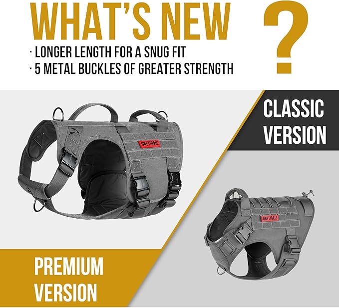 OneTigris Tactical Large Dog Harness, 5X Metal Buckled No Pull Service Dog Harness Vest with Hook & Loop Panels, Military Heavy Duty Dog Vest for Walking Hiking Training