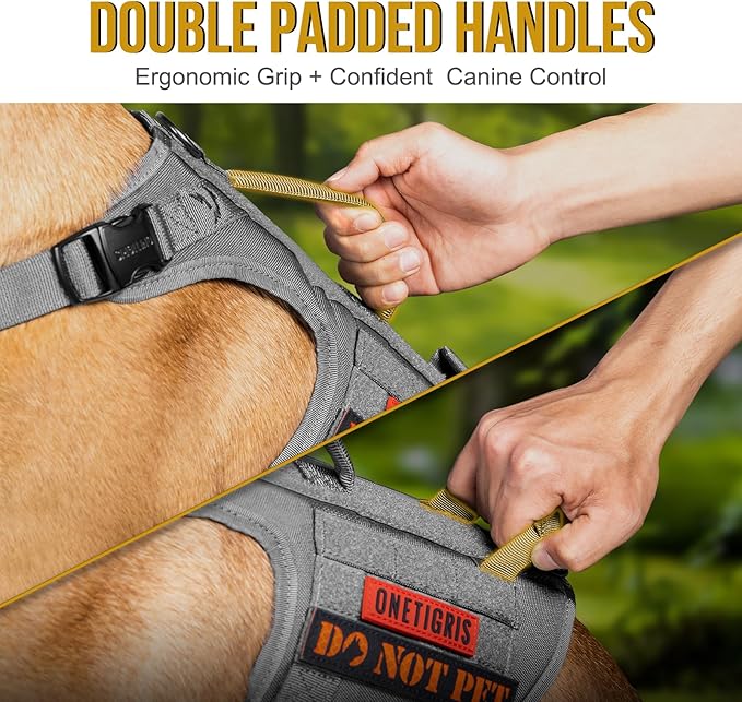 OneTigris Tactical Large Dog Harness, 5X Metal Buckled No Pull Service Dog Harness Vest with Hook & Loop Panels, Military Heavy Duty Dog Vest for Walking Hiking Training