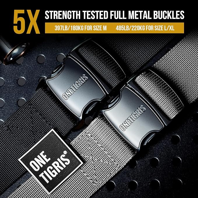 - FULL Metal Buckles Tactical Dog Harness: 1TG’s first full metal buckled tactical harness,which can bear great pulling force, ensuring your dog is safely harnessed during training, hunting, working, and any other occasions. 5 metal buckles strength tested at 397lb/180kg for size M and 485lb/220kg for size L/XL. This vest is the "sturdiness" one for your extremely strong large dog.