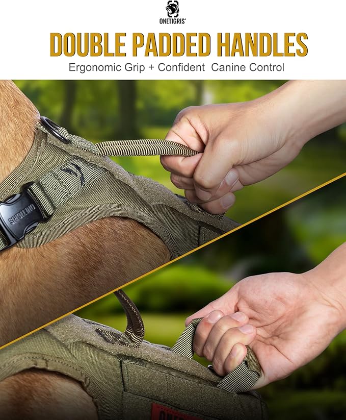 OneTigris Tactical Large Dog Harness, 5X Metal Buckled No Pull Service Dog Harness Vest with Hook & Loop Panels, Military Heavy Duty Dog Vest for Walking Hiking Training