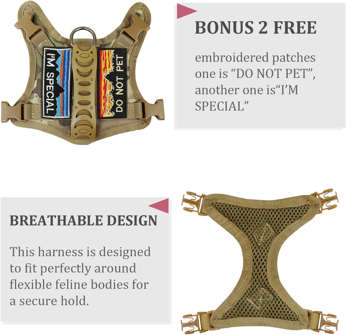 Tactical Cat Harness and Leash for Walking Esacpe Proof,Adjustable Soft Mesh Large Cat Vest with Rubber Handle Easy to Control,Molle Patches