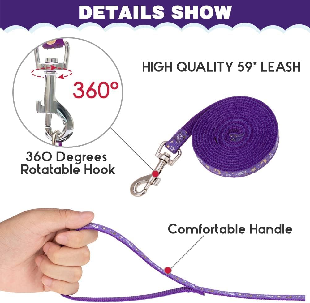 PAWCHIE Cat Harness with Leash and Collar Set - Escape Proof Adjustable H-shped Cat Harness with Star and Moon Pattern Glow in The Dark for Kitty Outdoor Walking