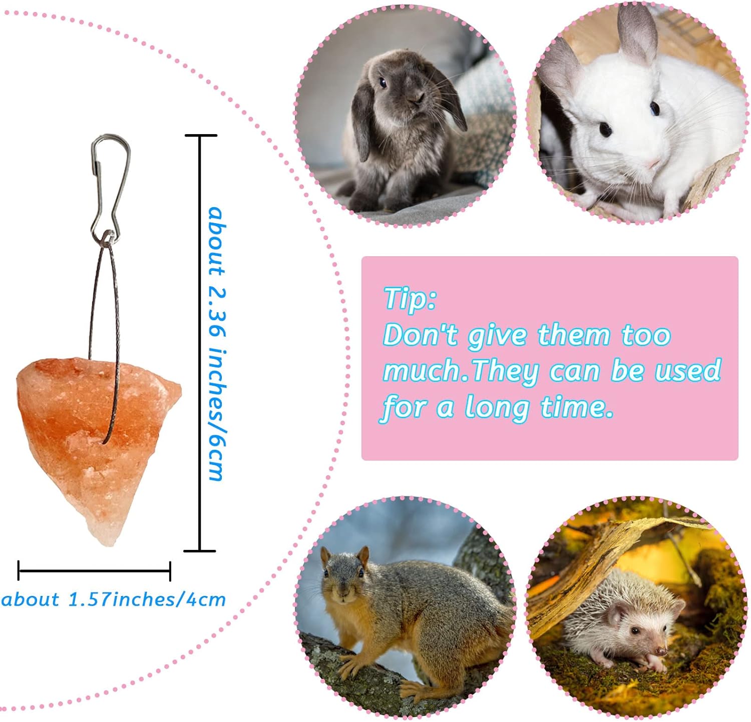 - 【HUNG DESIGN】Rabbit himalayan salt lick block is hung with hook,You can easily hang it at the appropriate position and height of the pet cage to provide pets with licking and chewing, so as to prevent the waste of stepping on dirt. Hanging small animal lick salt block can relieve the pressure and boredom of pets