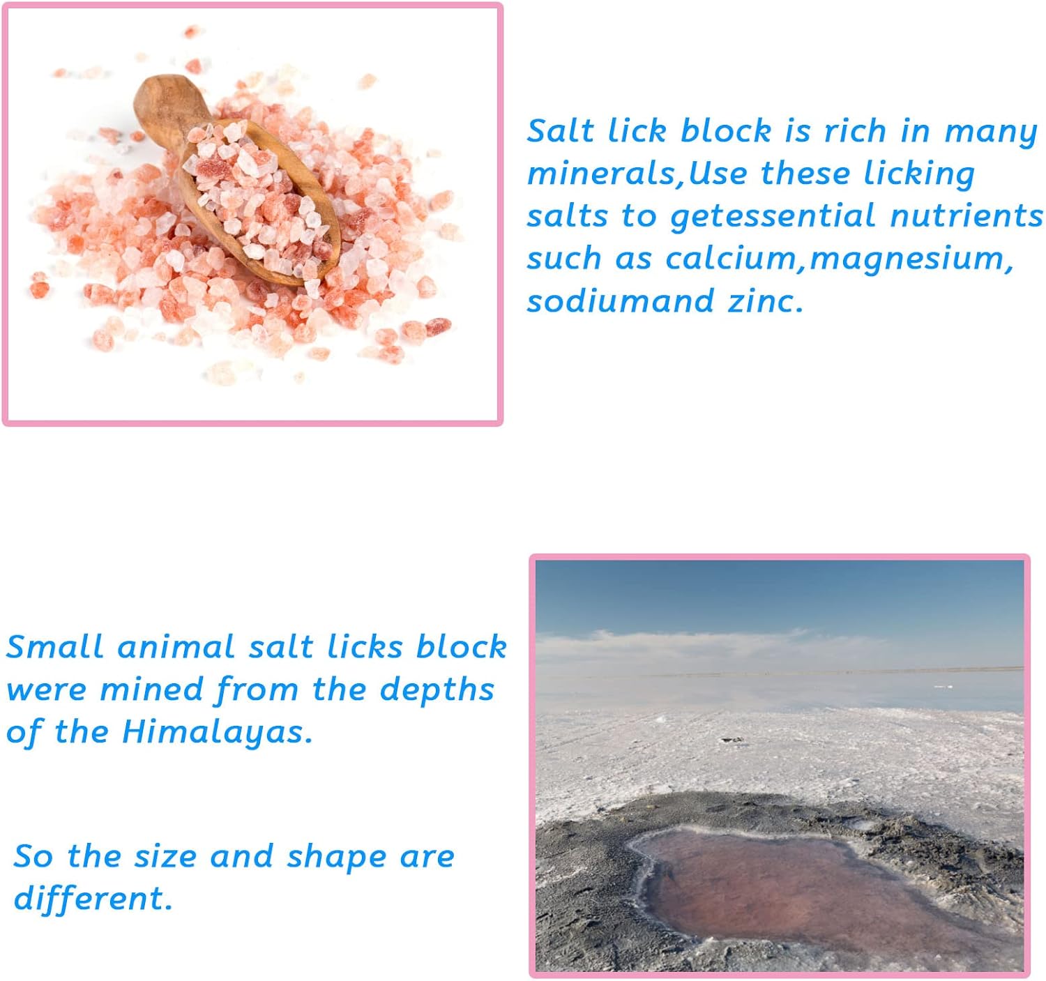 - 【UNIQUE SALT BLOCK】8 piece pets natural salt licks,From natural minerals,without any additives and preservatives,safe and healthy. Therefore,each one is unique in size,color and shape. Himalayan salt block has no standard size
