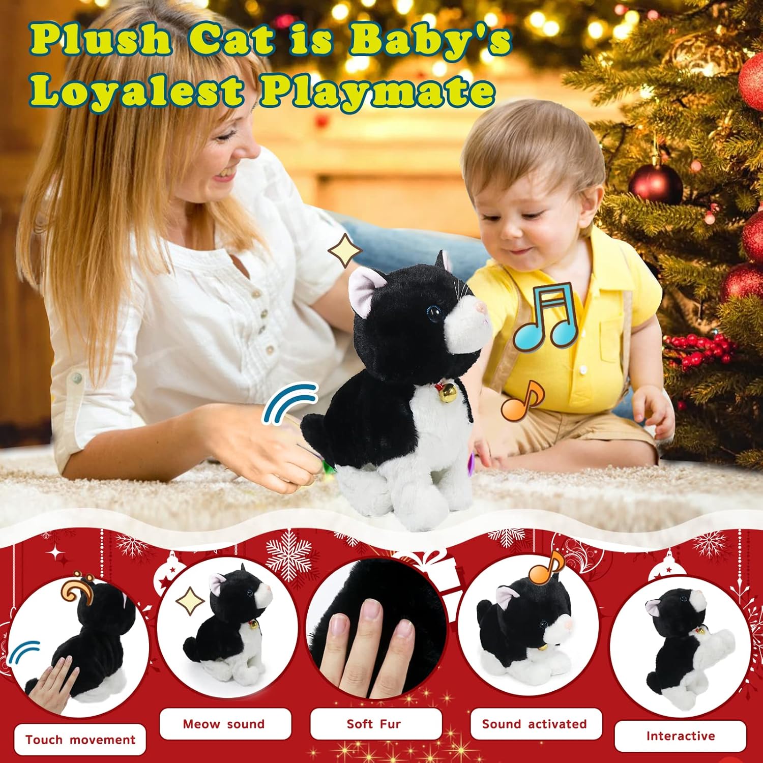 Plush Cat Stuffed Animal Interactive Robot Toy, LED Robotic Cat Barking Meow Kitten Touch Control, Electronic Cat Pet, Robot Kitty Toys, Animated Toy Cats for Girls Baby Kids