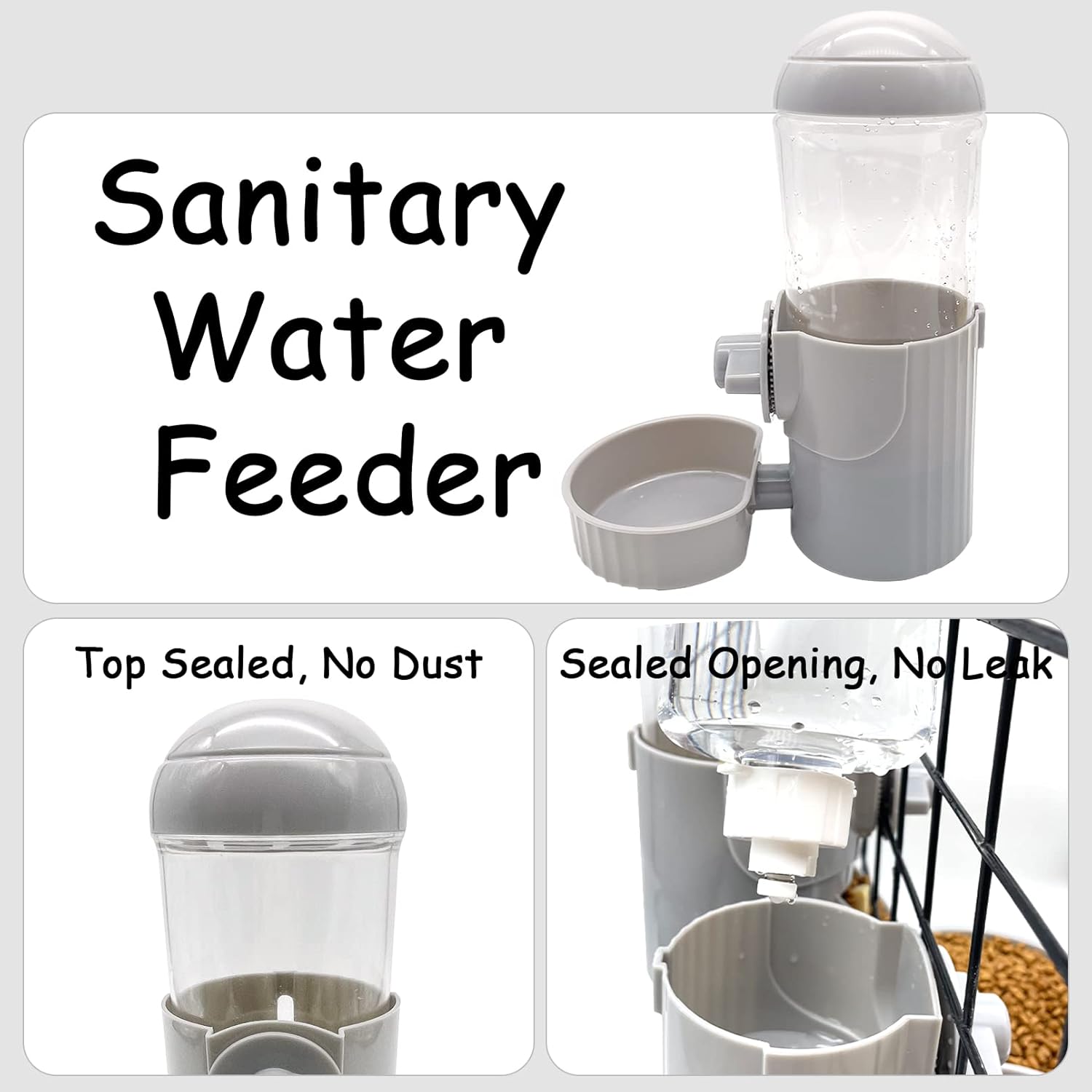 - Sealed Refilling Opening: The refilling openings of our water feeders are sealed, no leak, reduce waste. Compared with other traditional water feeders, top sealed water feeders can prevent mess and dust from polluting the water, provide your pets with sanitary drinking water and a more comfortable experience. The replenishing to the rabbit water bowls is based on gravity, can control the amount of water, no drips to the floor