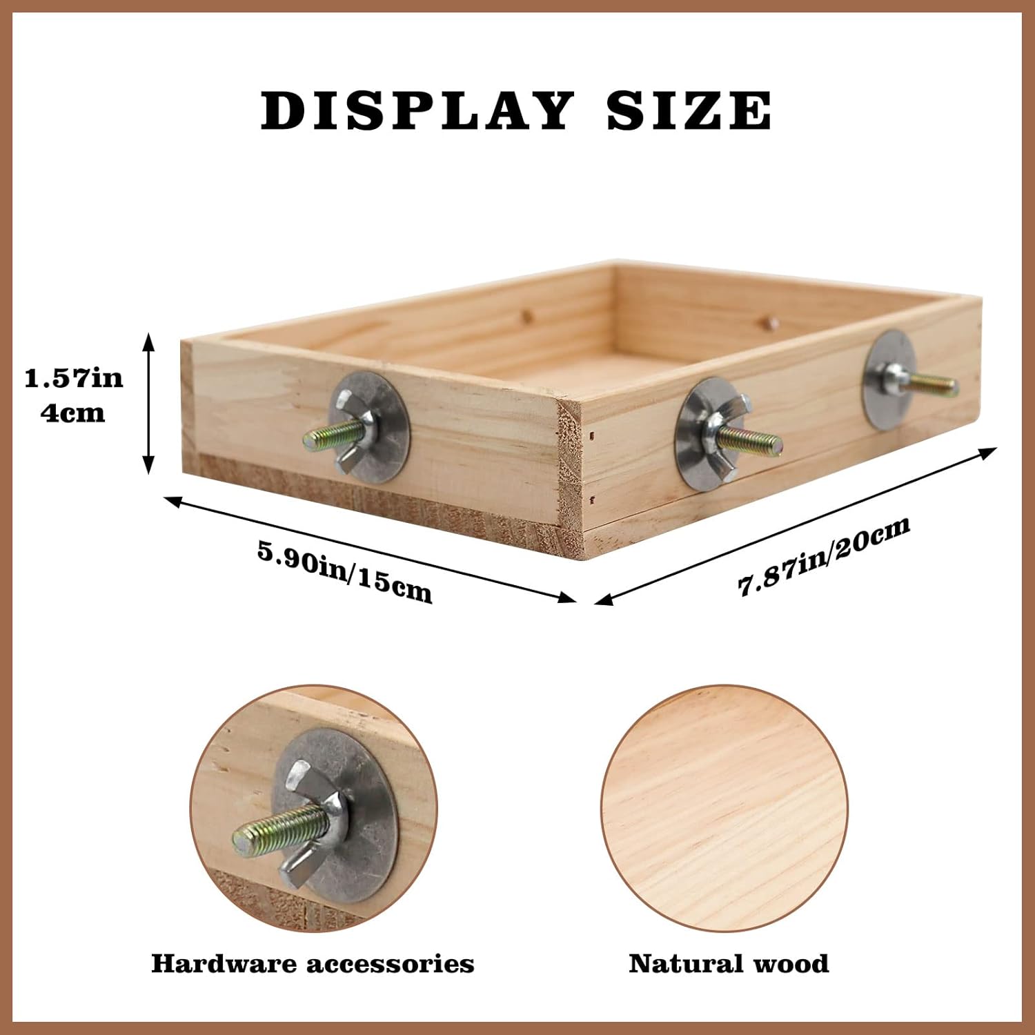 - 【Size and Package】: The size of the bird station board is 7.87*5.9*1.47"/20*15*4 cm(L*W*H), which is large enough for multiple birds or small animals to eat or play with. Birds feeding troughs package includes wooden feeding bowl*1 + metal washer*6 + butterfly nut*3 + screws*3.