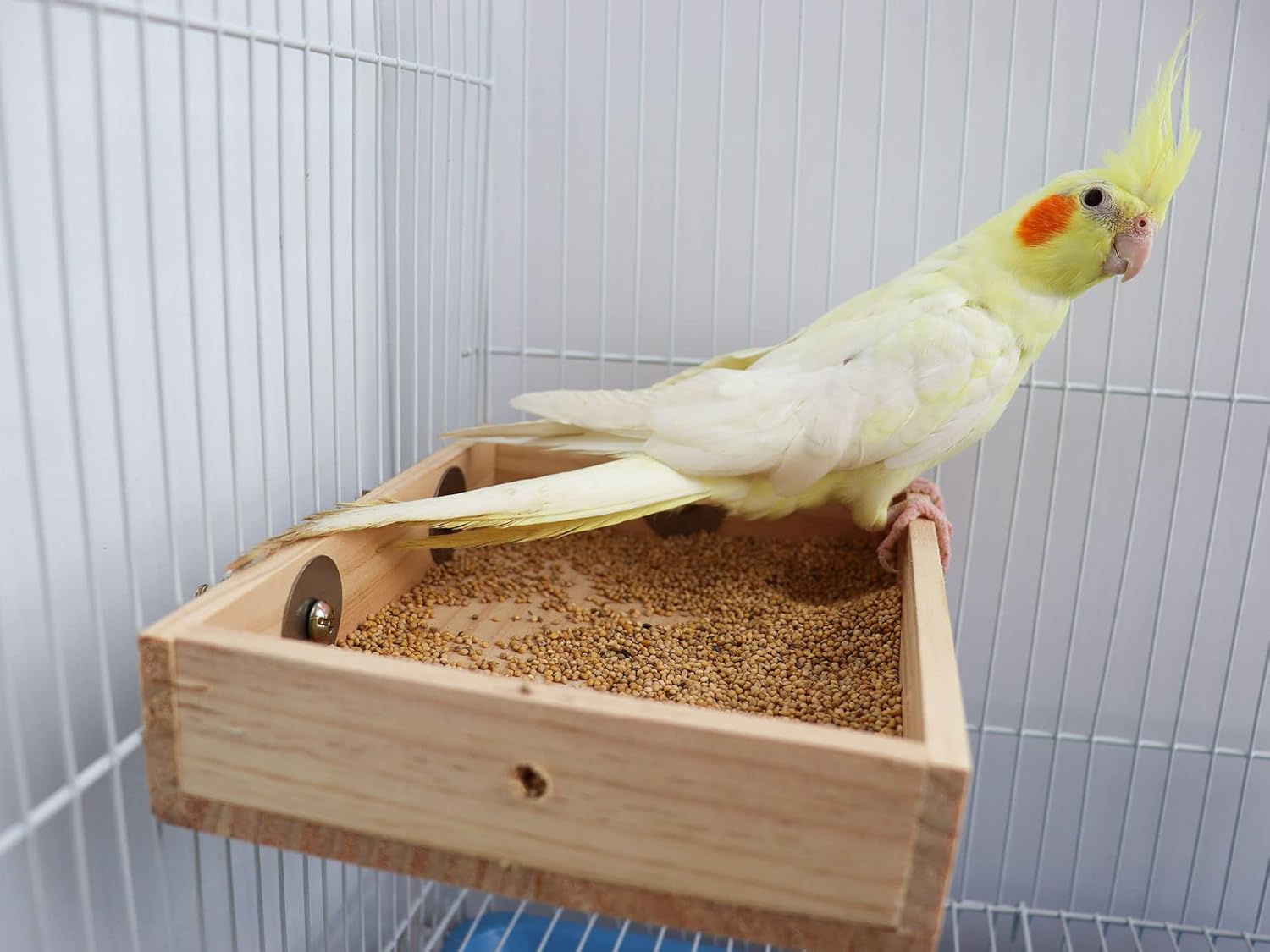 - 【Excellent Material】: The feeding cup with perch is made of 100% natural pine wood, which is green, durable, non-toxic, harmless, impact-resistant, and does not shrink or crack. Nuts and washers are stainless steel for durability.