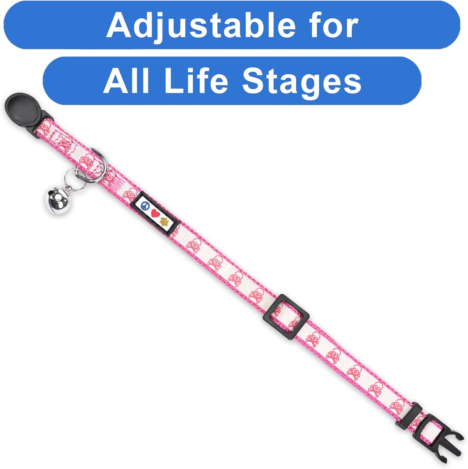 Pawtitas Halloween Cat Collars for Cats Adjustable Collar Glow in The Dark Feature and Safety Breakaway Buckle and Removable Bell to Match Your Halloween Cat's Costume - Pink Skulls Pattern