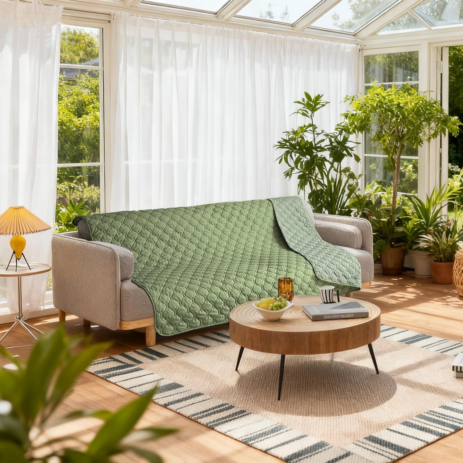 gogobunny 100% Double-Sided Waterproof Dog Bed Cover Pet Blanket Sofa Couch Furniture Protector for Puppy Large Dog Cat, Reversible (82x82 Inch (Pack of 1), Dark Green/Light Green)