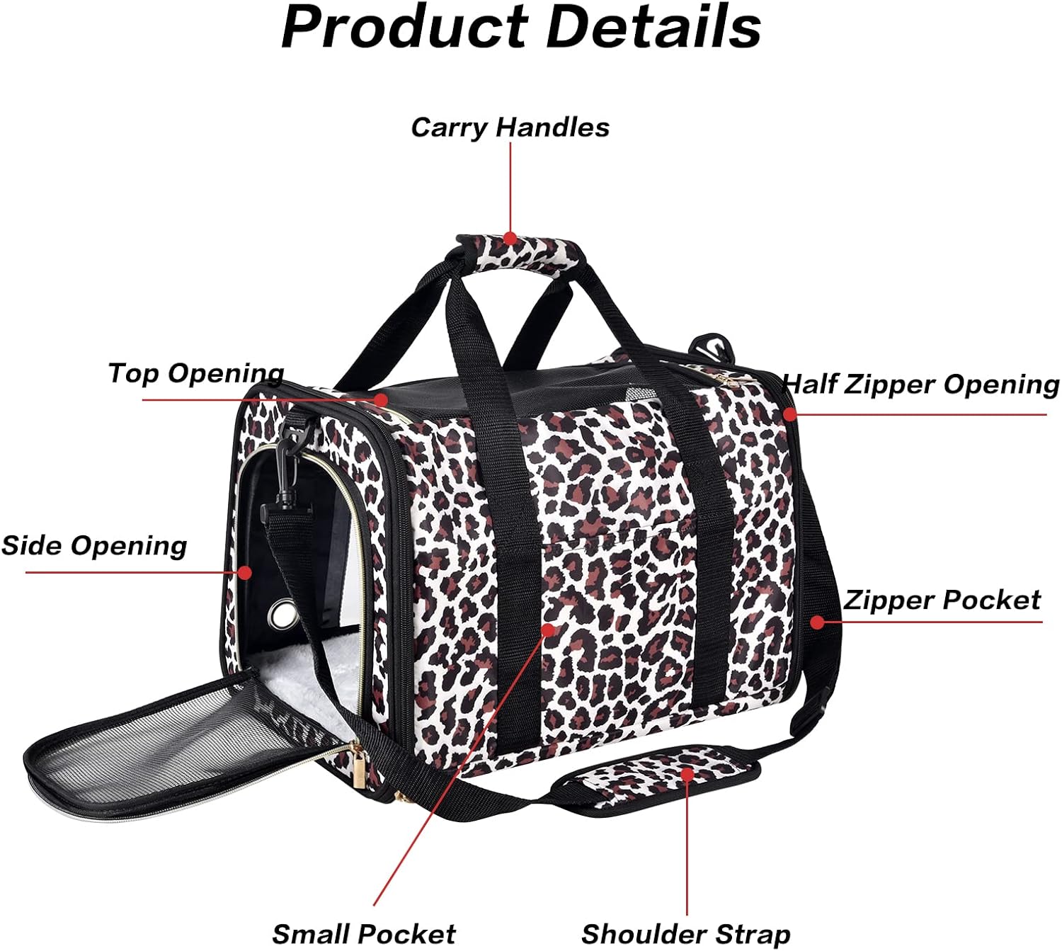 Petmolico Cat Carrier Soft-Sided Pet Bag for Small Medium Cats Puppies 16LBs - Airline Approved Pet Travel Carrier 3 Open Doors (Medium,Leopard)