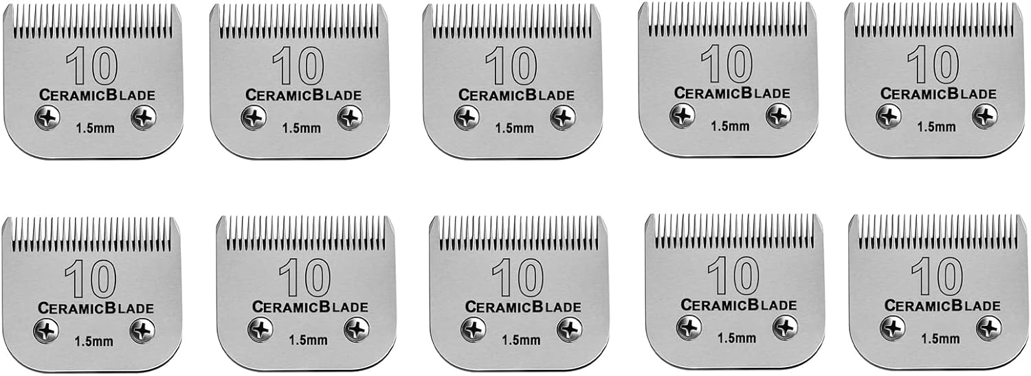 10 Pack Detachable Pet Dog Grooming Clipper Ceramic Blade Sets,Compatible with Andis Size 10 Cut Length 1/16"(1.5mm),Compatible with andis/Oster A5/Wahl 10KM Series Clippers
