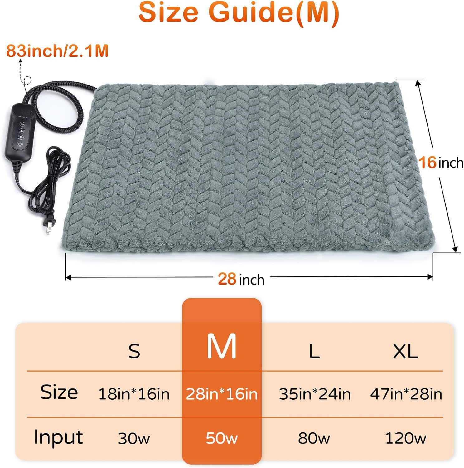 GASUR Heated Dog Bed, Waterproof Cat Heating Pad with Timer Temperature Adjustable, Indoor Heated Electric Pet Bed for Cats Dogs, Auto Power-Off, Anti-bite Pet Heated Pad, 28''x16'', Medium