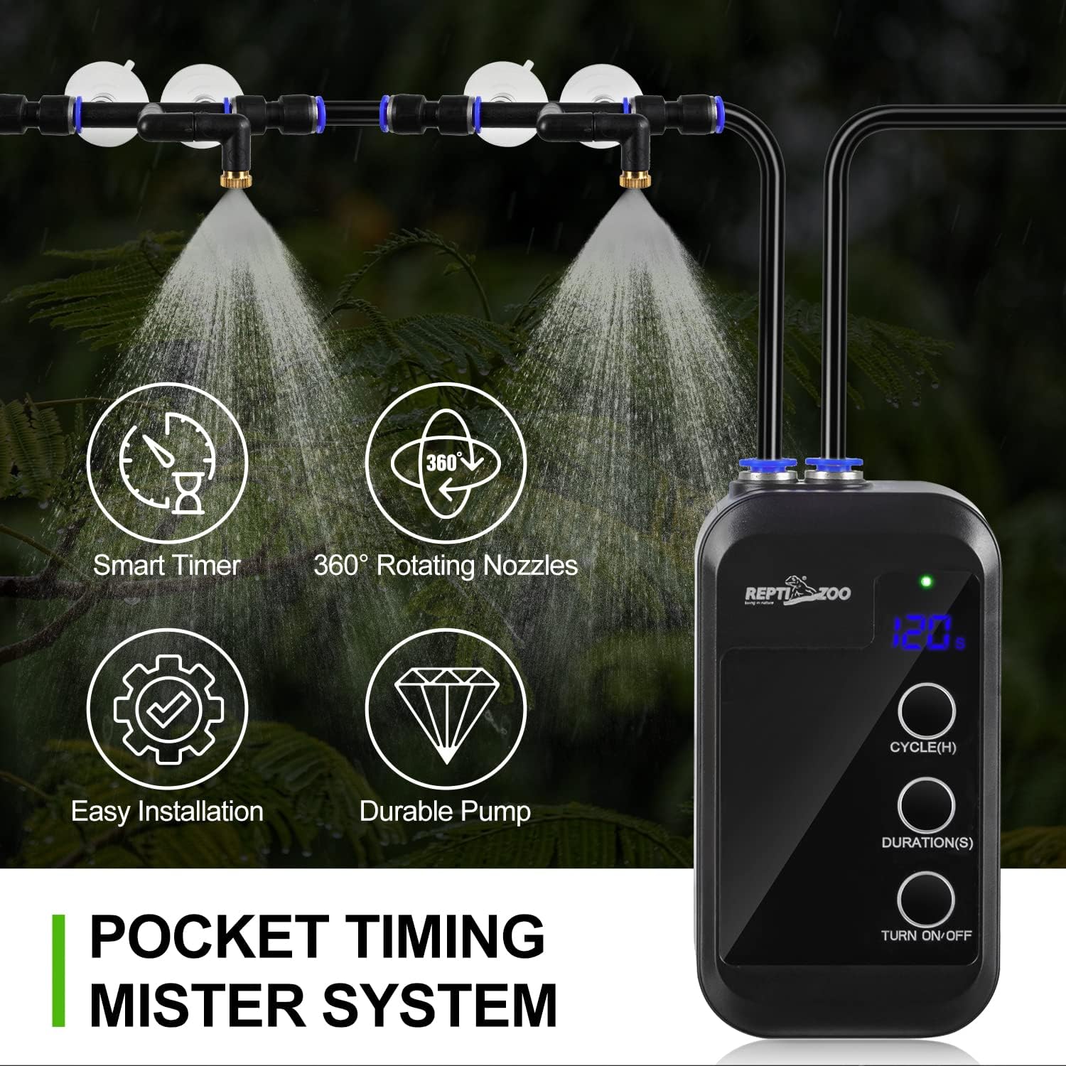 REPTI ZOO Reptile Humidifier, Mini Automatic Misting System for Reptile Terrariums, Rainforest Spray System with Adjustable Spray Nozzles