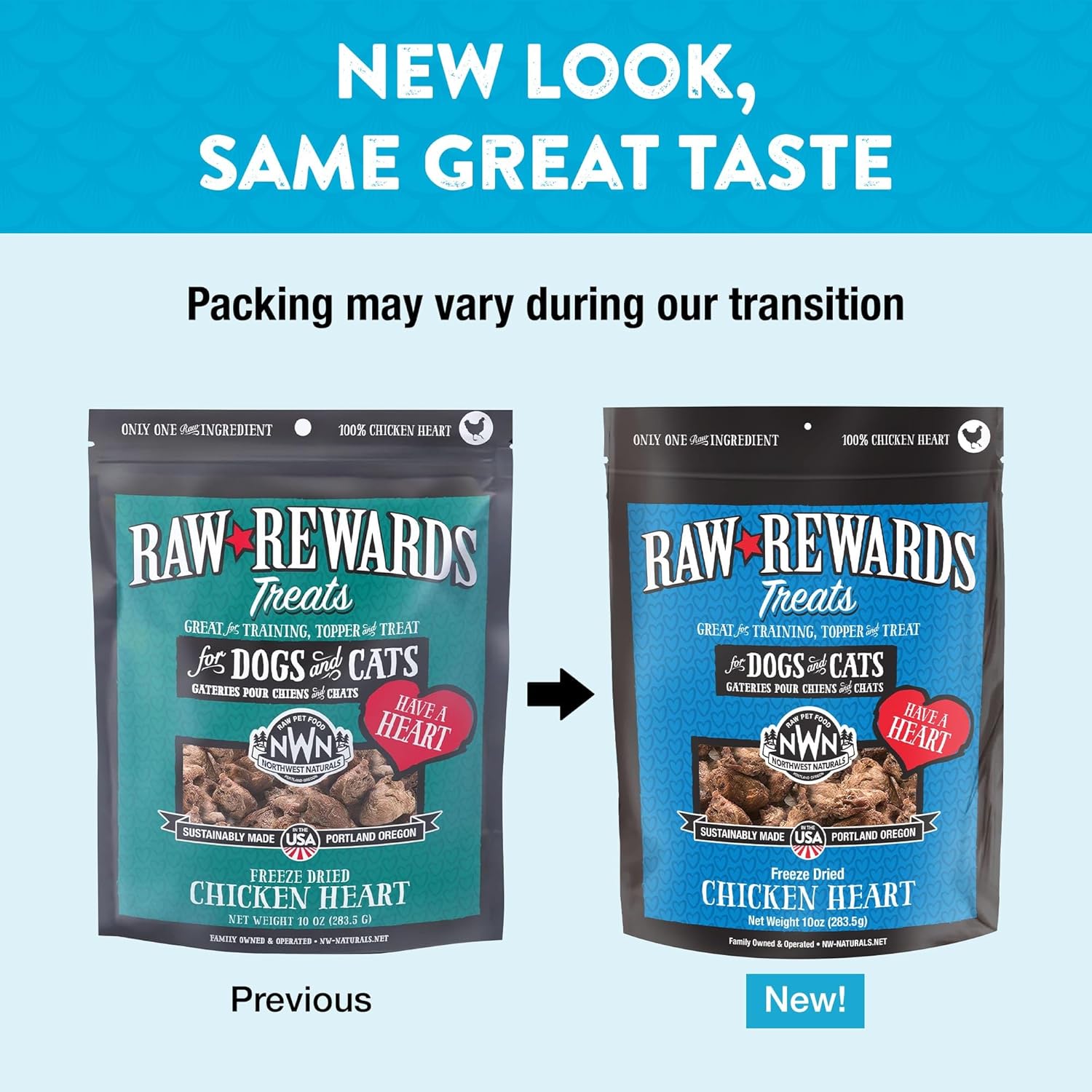 Northwest Naturals Raw Rewards Freeze-Dried Chicken Heart Treats for Dogs and Cats - Bite-Sized Pieces - Healthy, 1 Ingredient, Human Grade Pet Food, All Natural, Proudly Made in USA, 10 Oz
