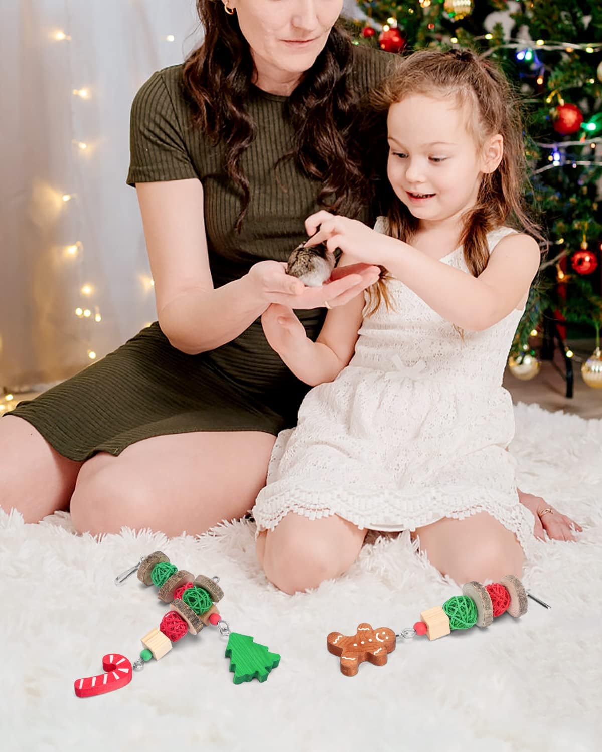 - IDEAL GIFT: Our 3pcs Xmas small animal toys make an ideal gift for furry friends. The design includes Christmas:themed elements which strengthen festive atmosphere. With the wood pines shaped into candy cane, gingerbread man and Christmas tree , the colorful chew treats can be cute decorations for cage.