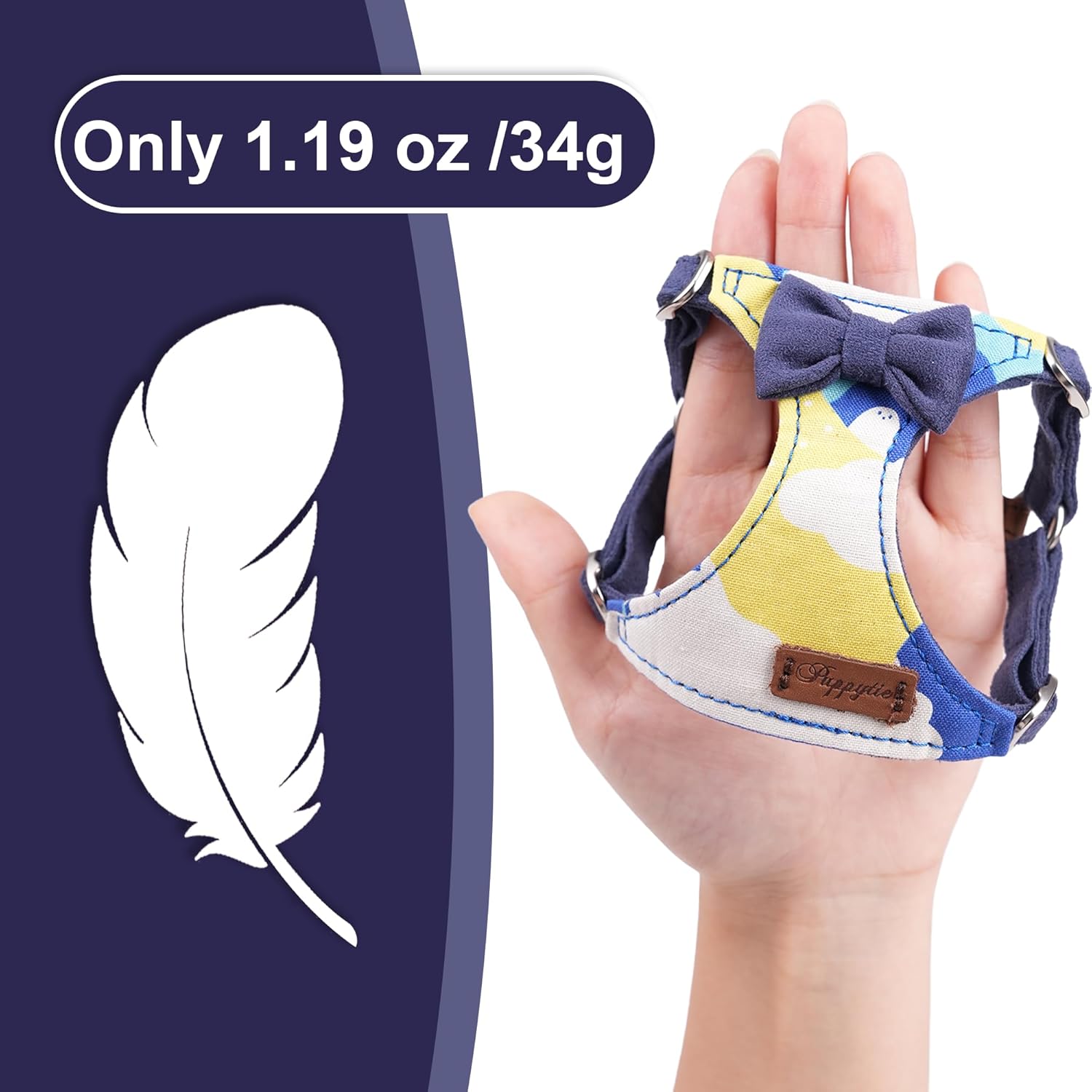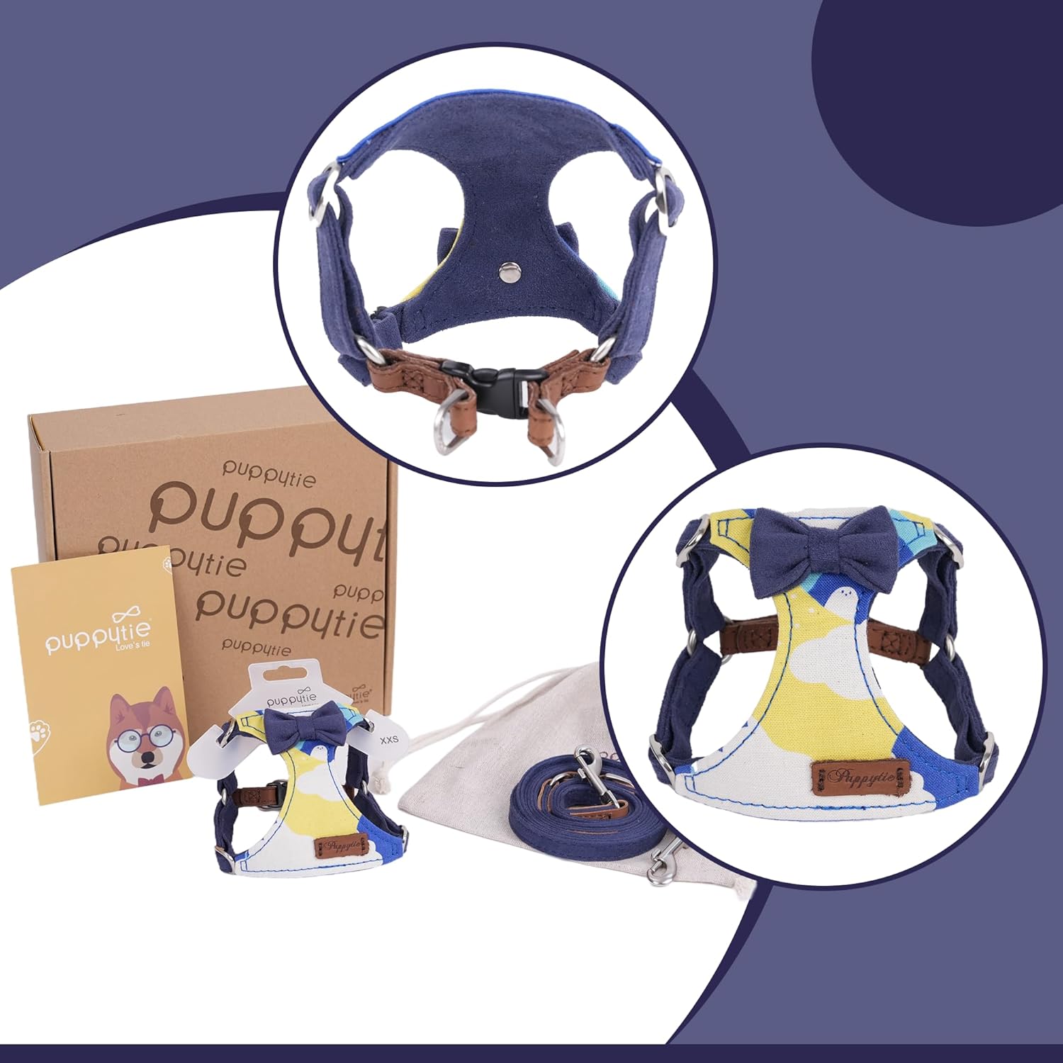 Puppytie No Pull xs Dog Harness with Multifunction Dog Leash,Soft Adjustable No Choke Escape Proof Pet Harness Vest,Suede Bow Navy,XXS