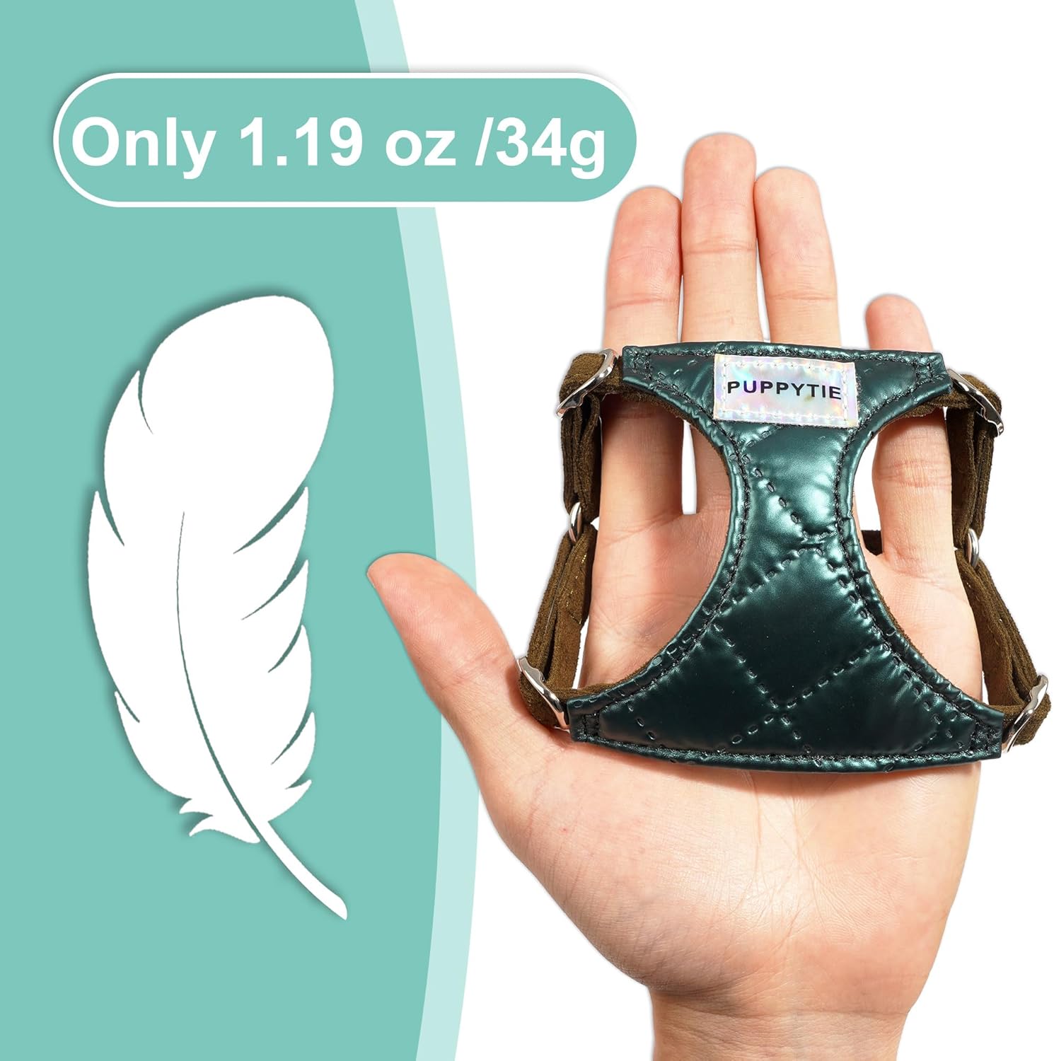 Puppytie No Pull xs Dog Harness with Multifunction Dog Leash,Soft Adjustable No Choke Escape Proof Pet Harness Vest,Glossy Dark Green,XXS