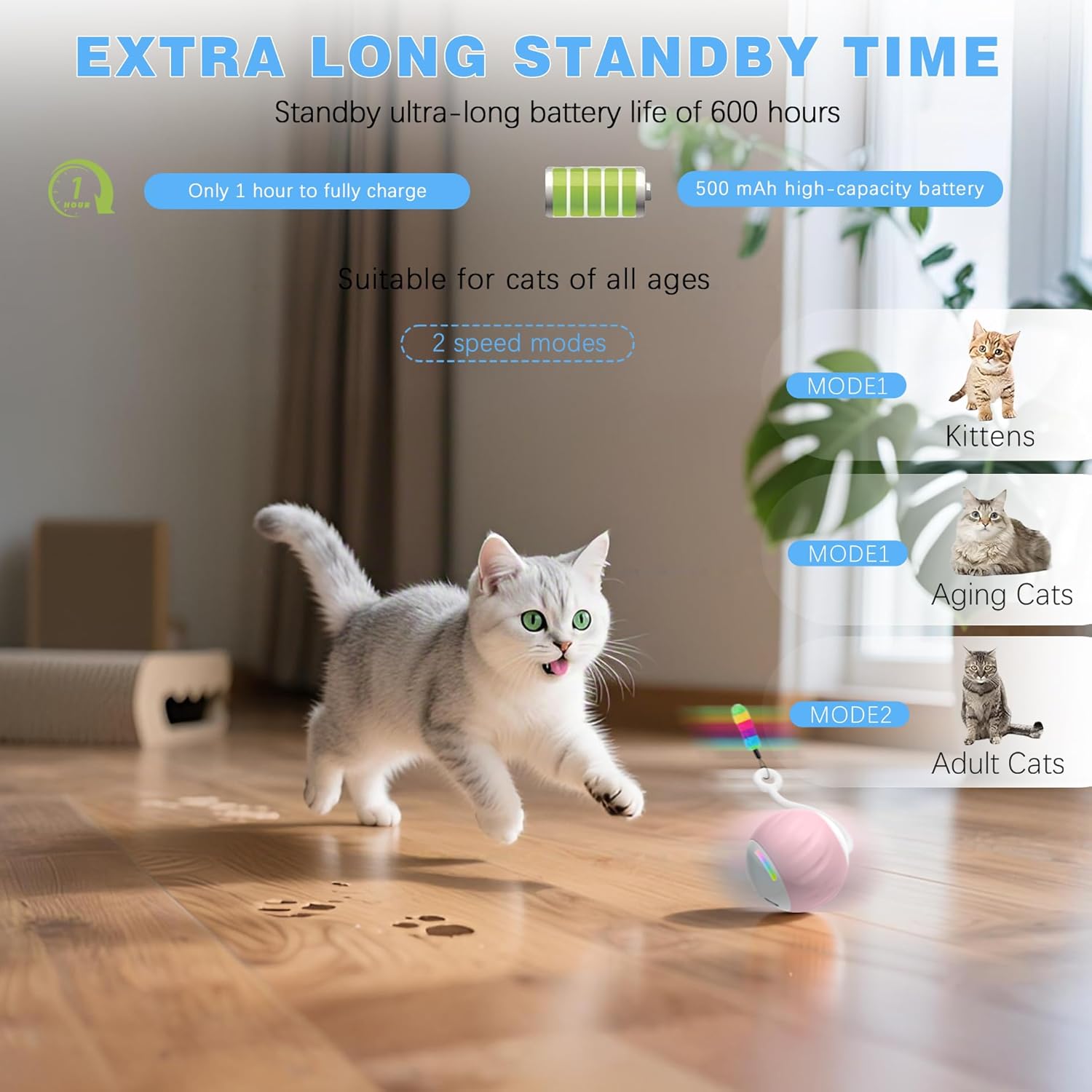 - Large Capacity Rechargeable Battery Cat Ball Toy : Built-in 500 mAH rechargeable battery. The automatic cat toys uses a Type-C charging port. The charging time of the smart interactive cat toys ball is about 1 hours, and the play time is about 4 hours. In standby mode, It can stand by for 600 hours. Your little kitten can play all day when you are not at home.(We prioritize product quality and user experience, but please note that individual cats may have varying preferences. If you receive a defective product or encounter issues, contact our after-sales team. We will ensure satisfactory resolution.)