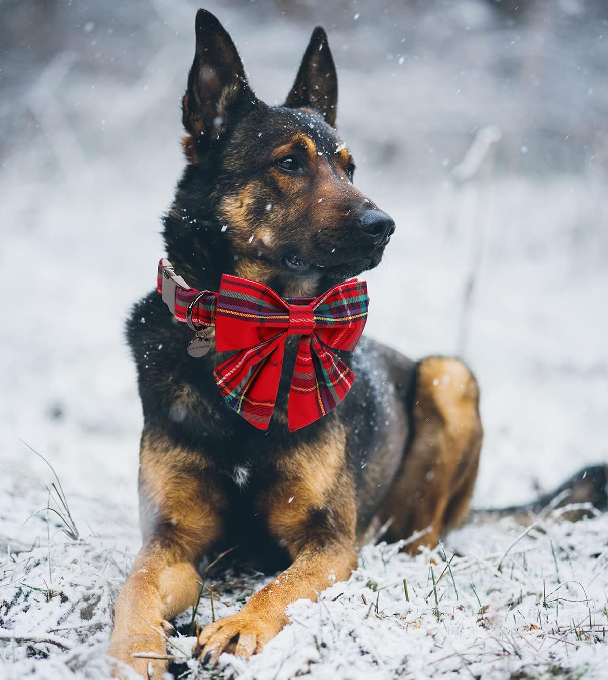 - [UNIQUE DESIGN] This red plaid dog collar is specially designed for Christmas, grid never goes out of style. You can see matching leash, poop bag holder, dog bandana in DOGWONG store
