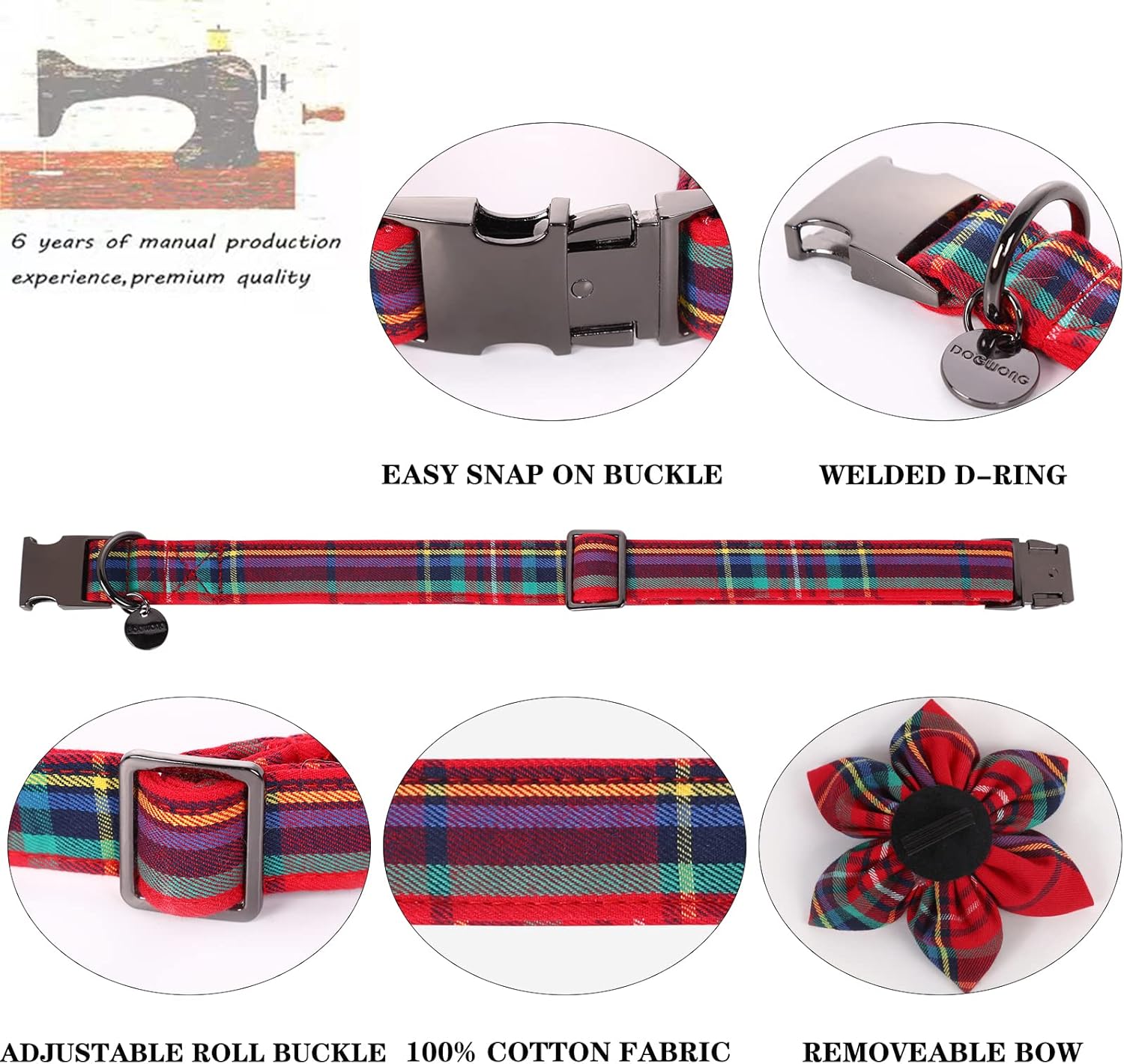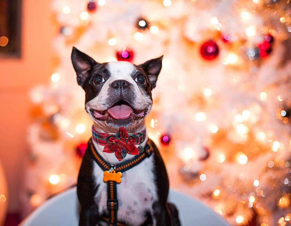 - [UNIQUE DESIGN] This red plaid dog collar is specially designed for Christmas, grid never goes out of style. You can see matching leash, poop bag holder, dog bandana in DOGWONG store
