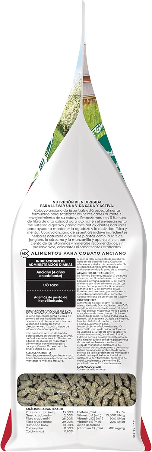 - COMPLETE VITAMIN & MINERAL SUPPORT: Oxbow Senior Guinea Pig delivers 100% of the essential vitamins & minerals guinea pigs need, including stabilized Vitamin C in every pellet; a clean senior cavy diet with no artificial colors, flavors, or preservatives