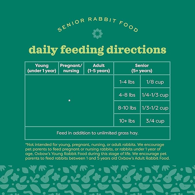 - VETERINARIAN RECOMMENDED: Our senior bunny food comes with the golden seal of veterinarians' recommendation; Trust in the advice of animal health experts who place faith in the quality and nutritional value of Oxbow foods
