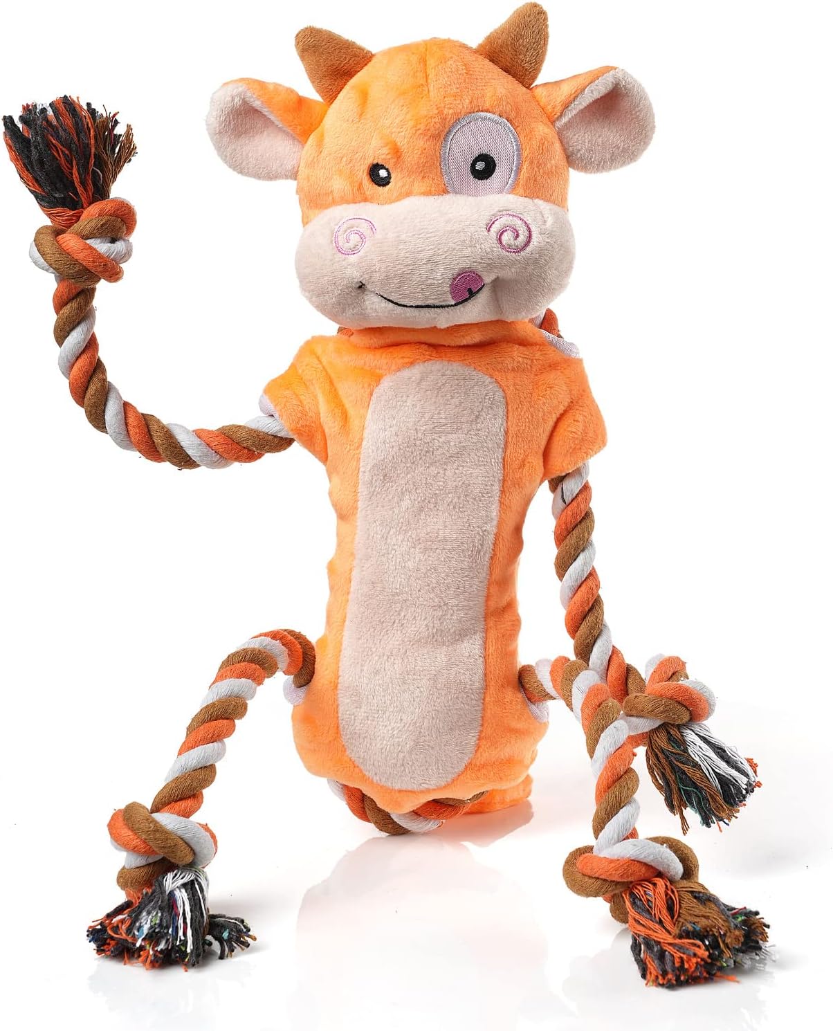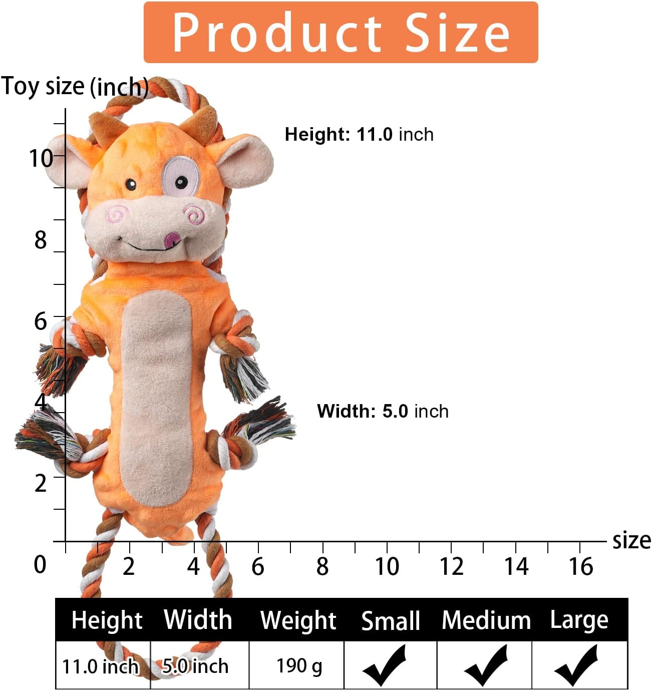 Dog Toys, Tug of War Dog Toys for Large Breed, Cute Squeaky Interactive Dogs Toy with Crinkle Paper, Plush Puppy Chew Toy for Small, Middle, Big Dogs (Cow-SS)