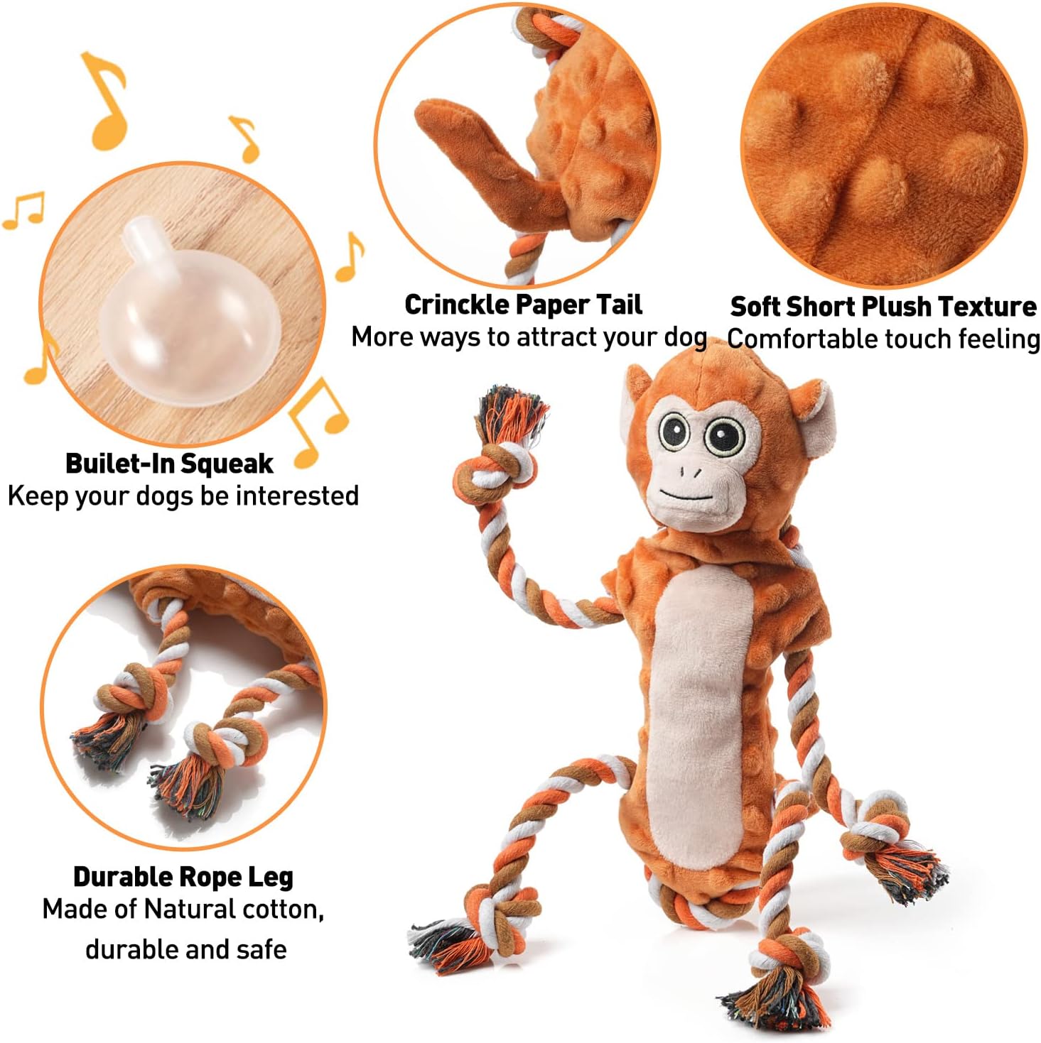 - 【Lightweight & Durable Design】:Sedioso dog toy has a lightweight monkey shape design,which is perfect for puppy,small,middle and large dogs(Do not recommend for extreme strong bite dogs), it is easy to throw it out for fetching game with your pets,which will make your pets healthier and you can wash it by hand or in the washing machine